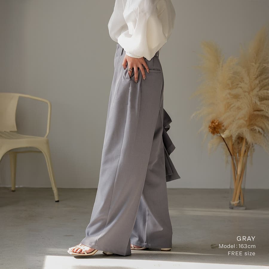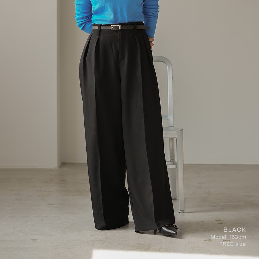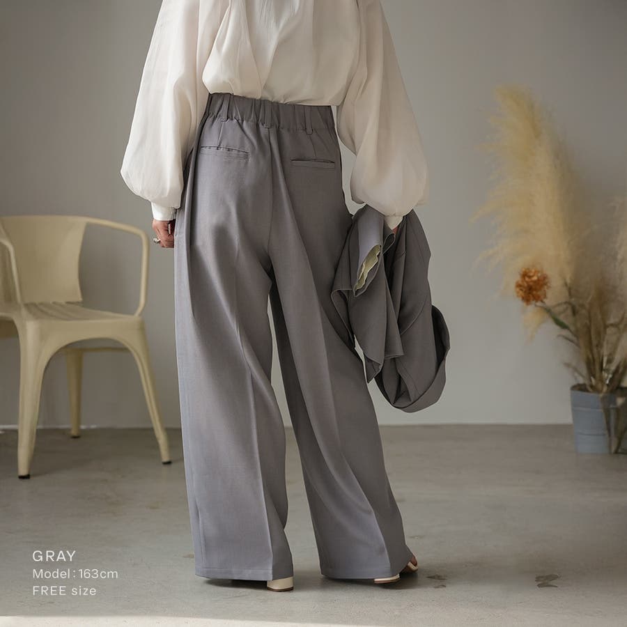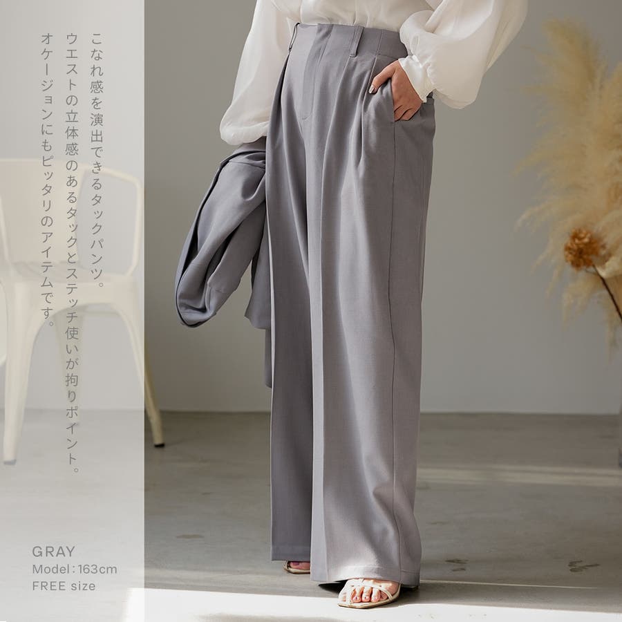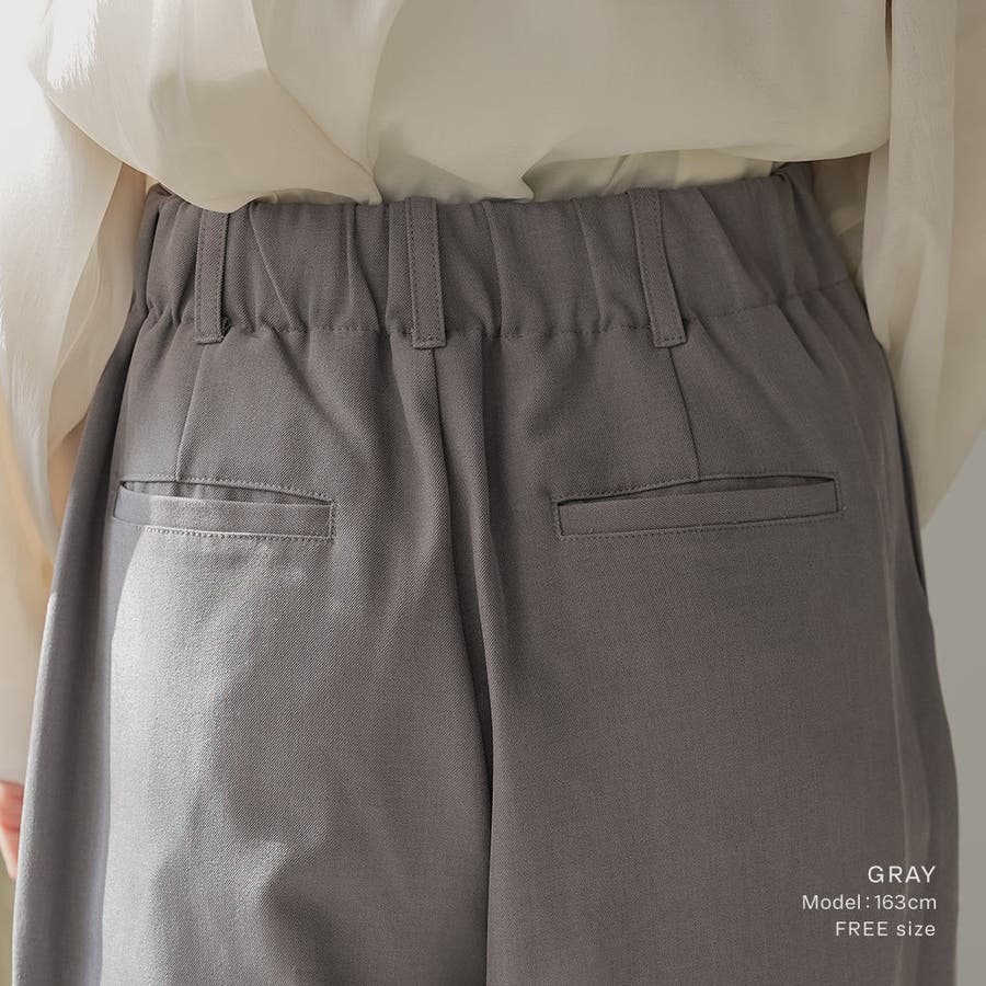 シンプルながらタックを入れることによって、ゆったり余裕のあるワイドシルエットですが