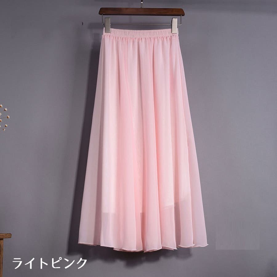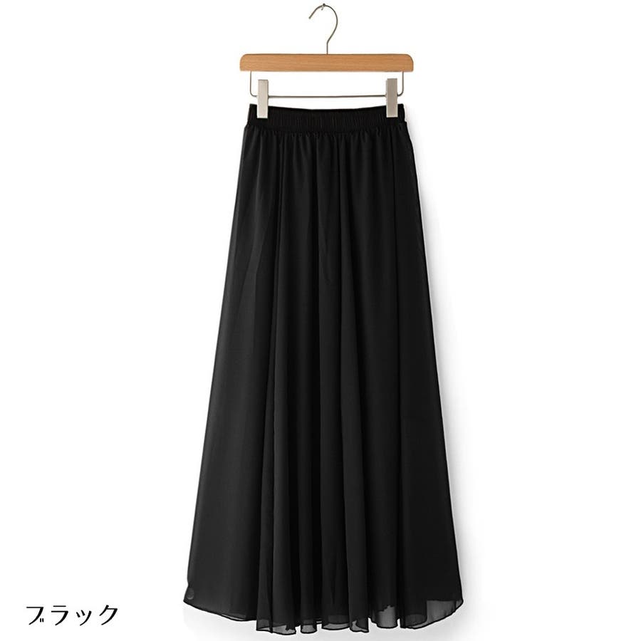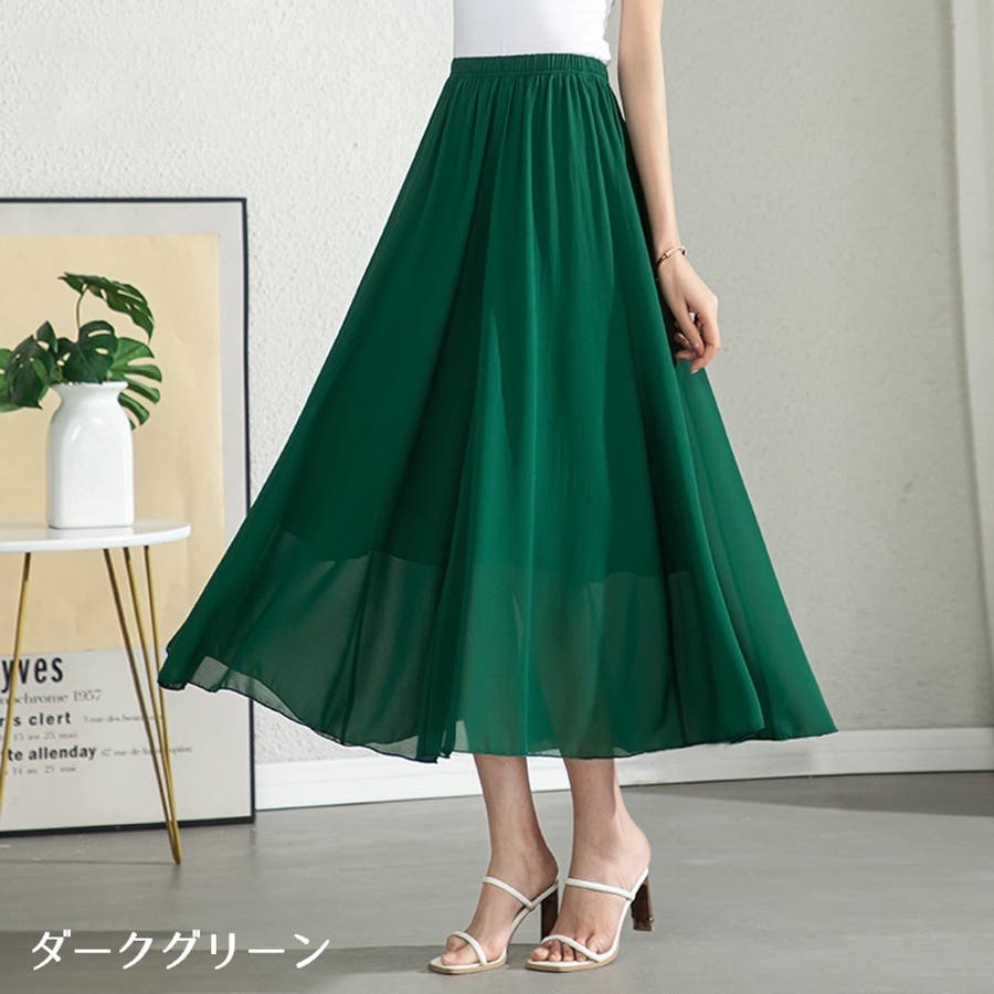 フレア&シフォンスカートで女性らしいシルエットに◎