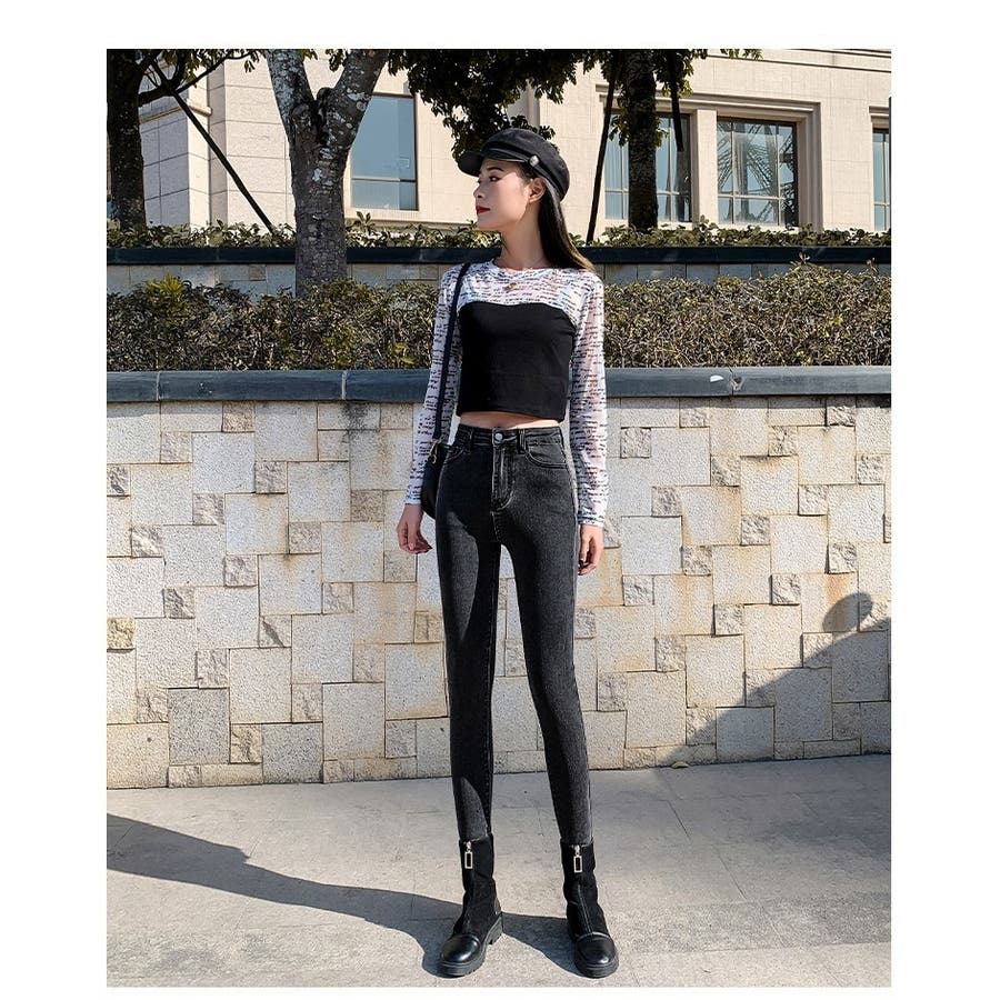 ハイライズなのでトップスをインするスタイルにもおすすめ♪