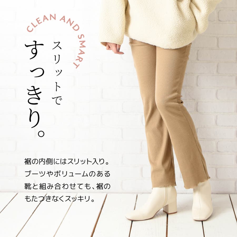スリット入りの裾はボリュームのある靴と組み合わせても、もたつかずスッキリ♪