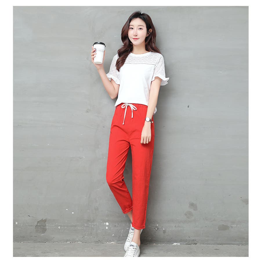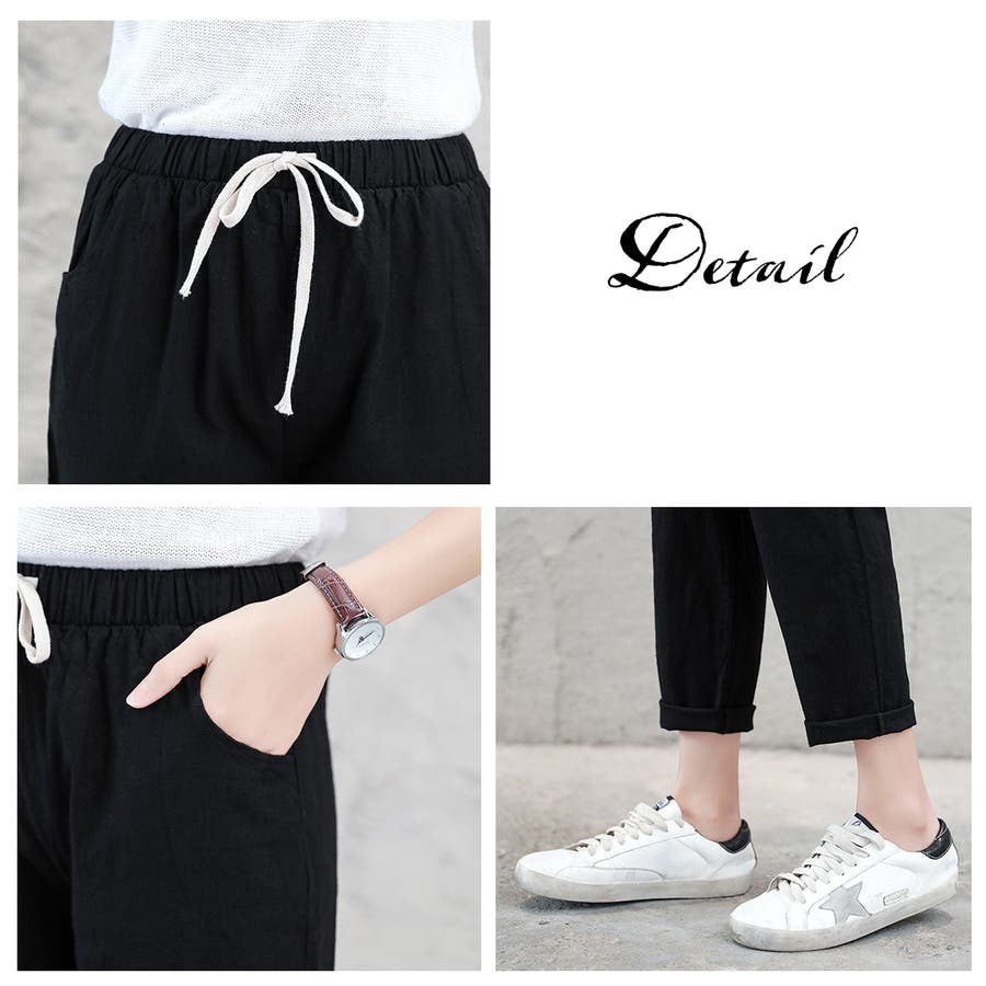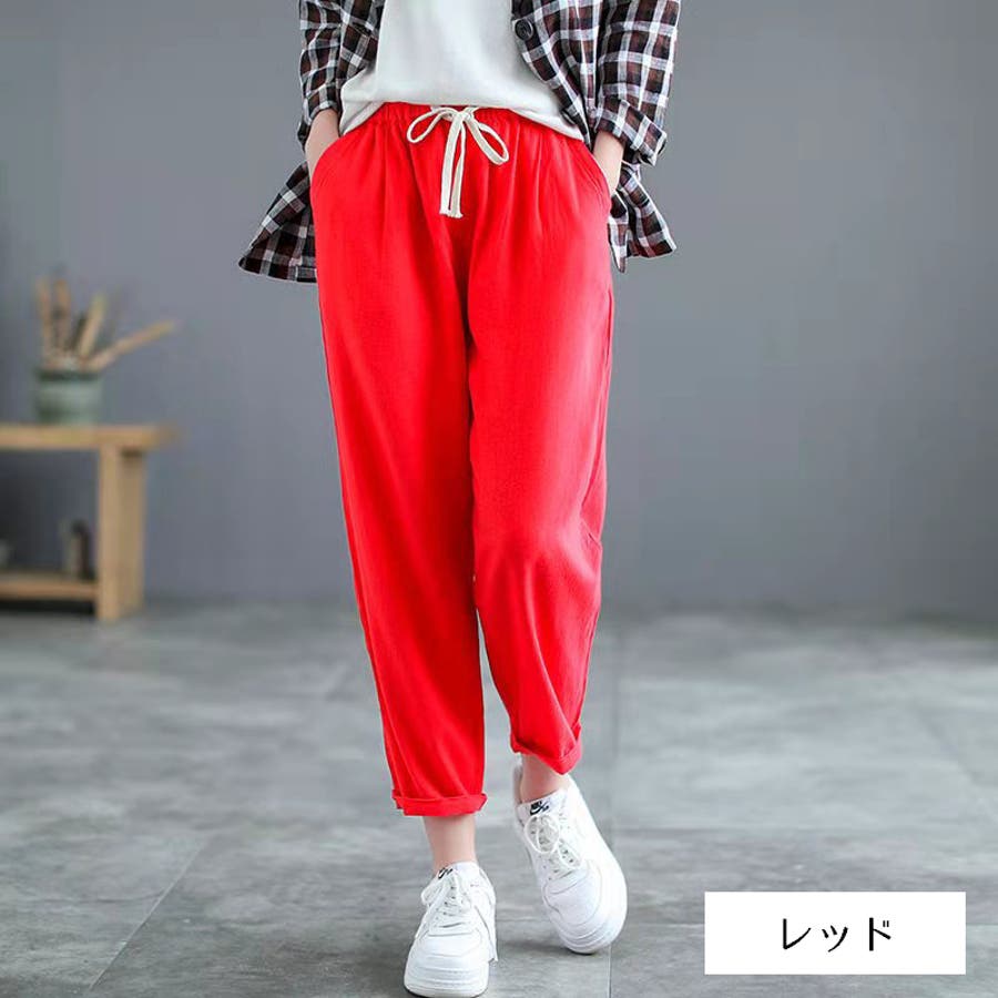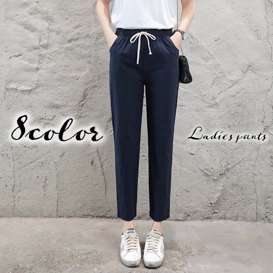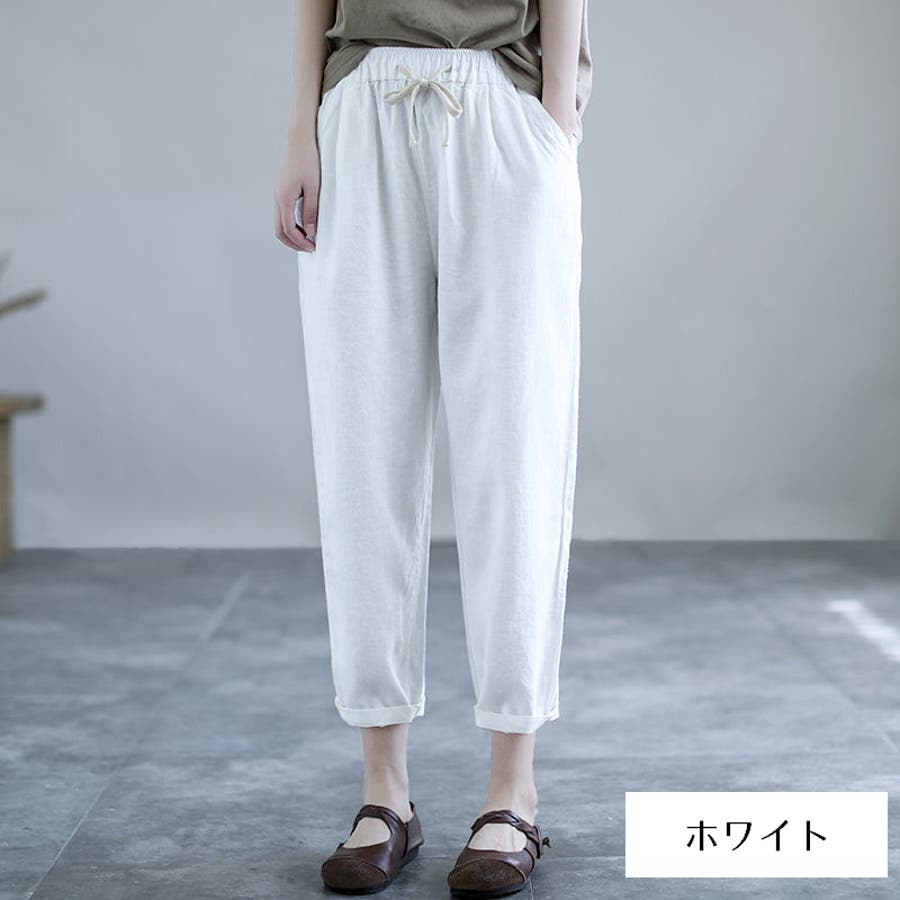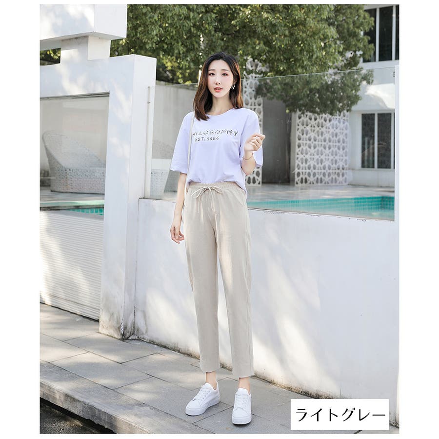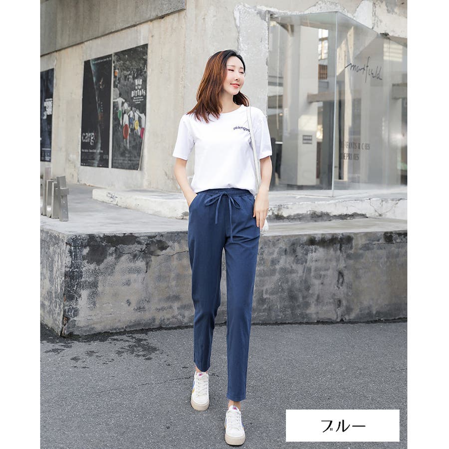 リネン調のナチュラル感とウエストゴムのリラックス感が◎