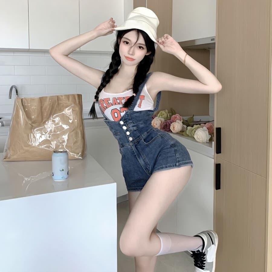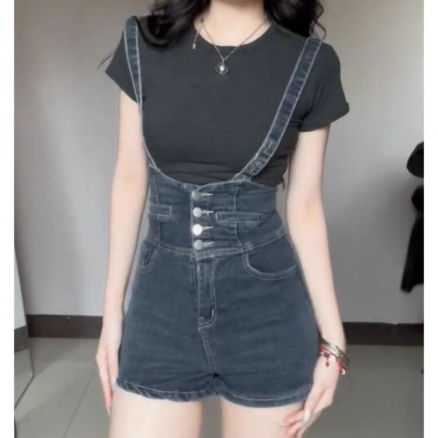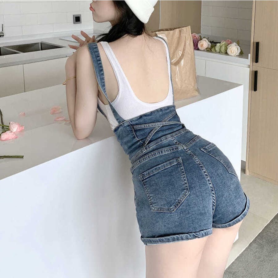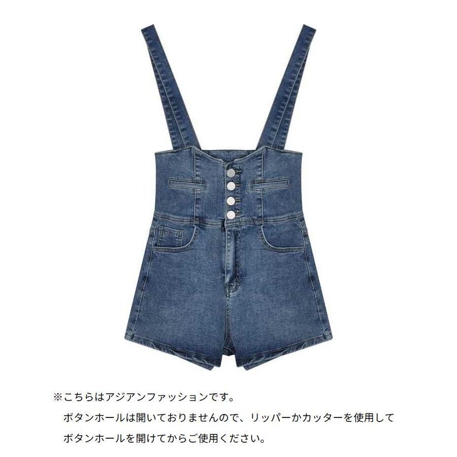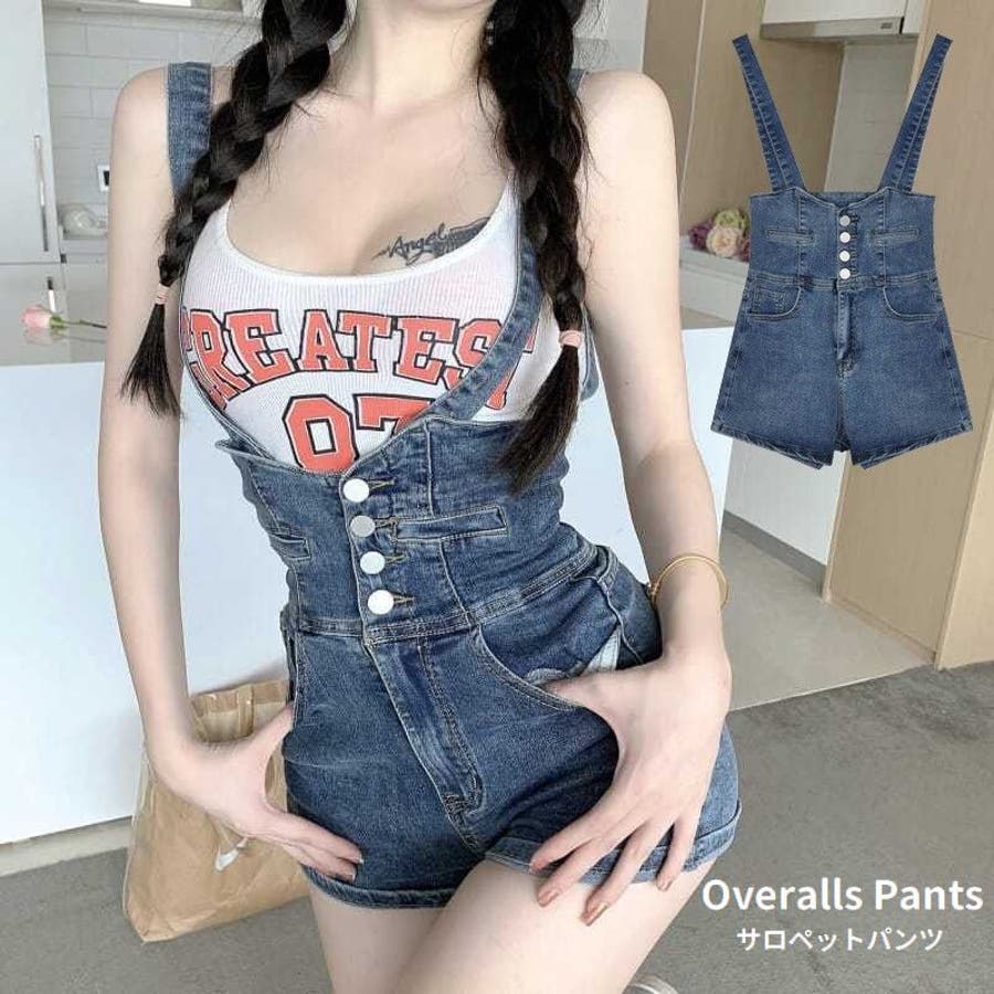 ショート丈+ハイウエストデザインのレディース用サロペットパンツです。