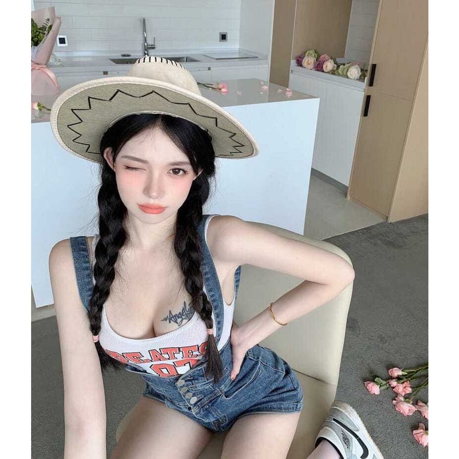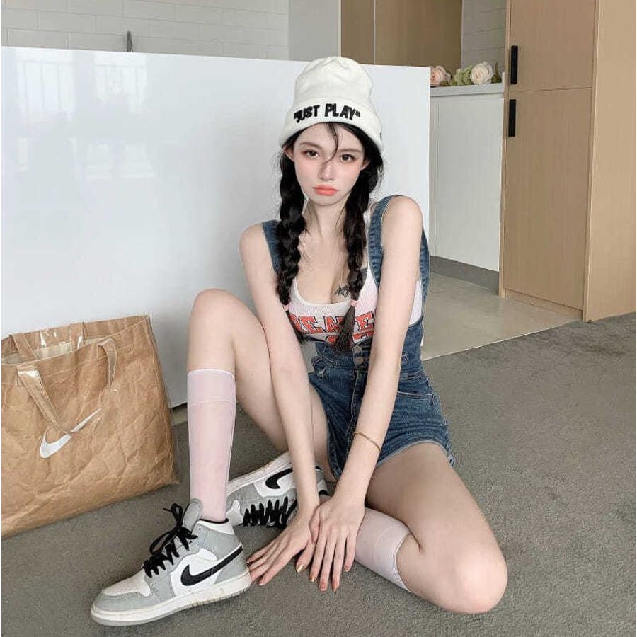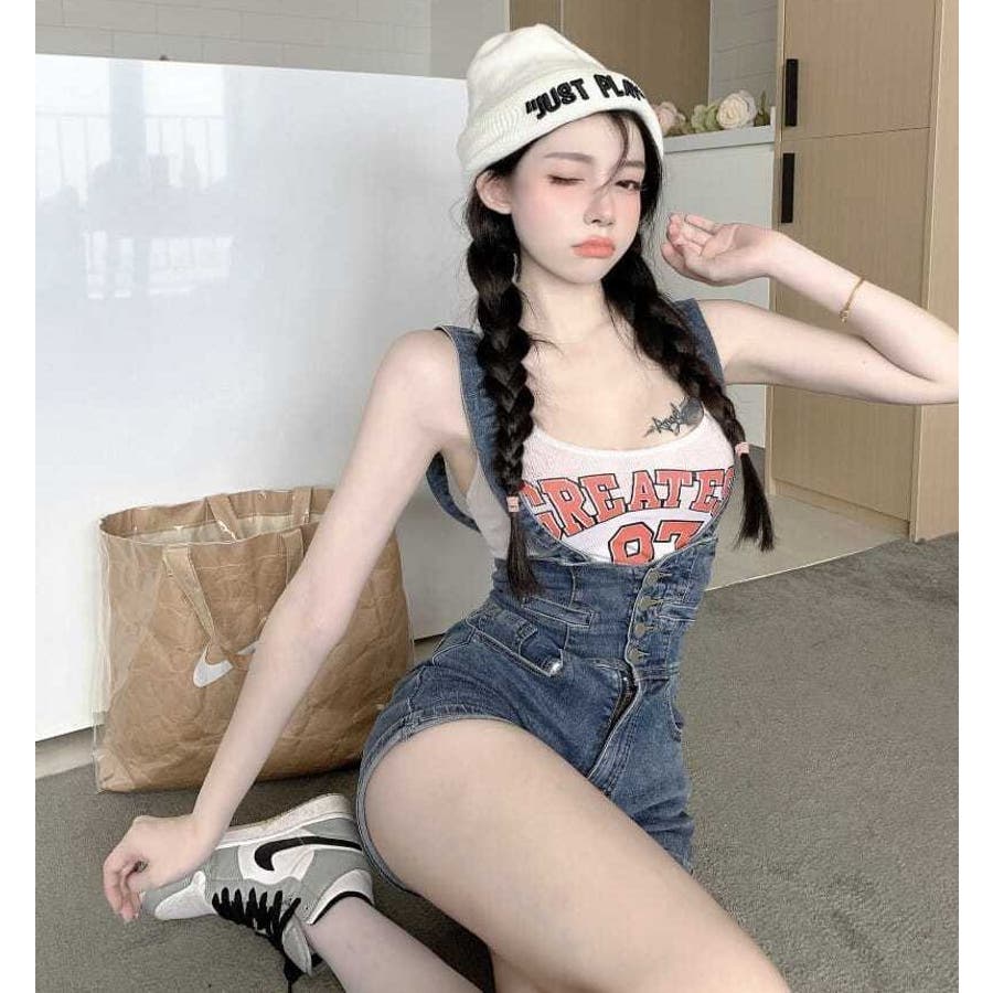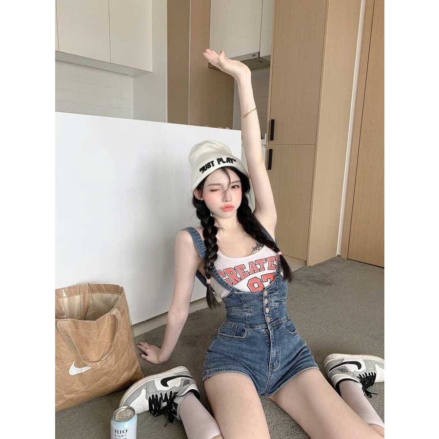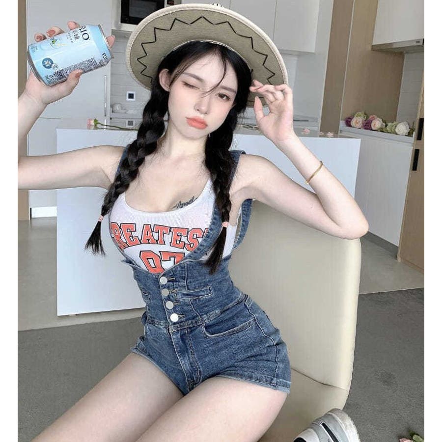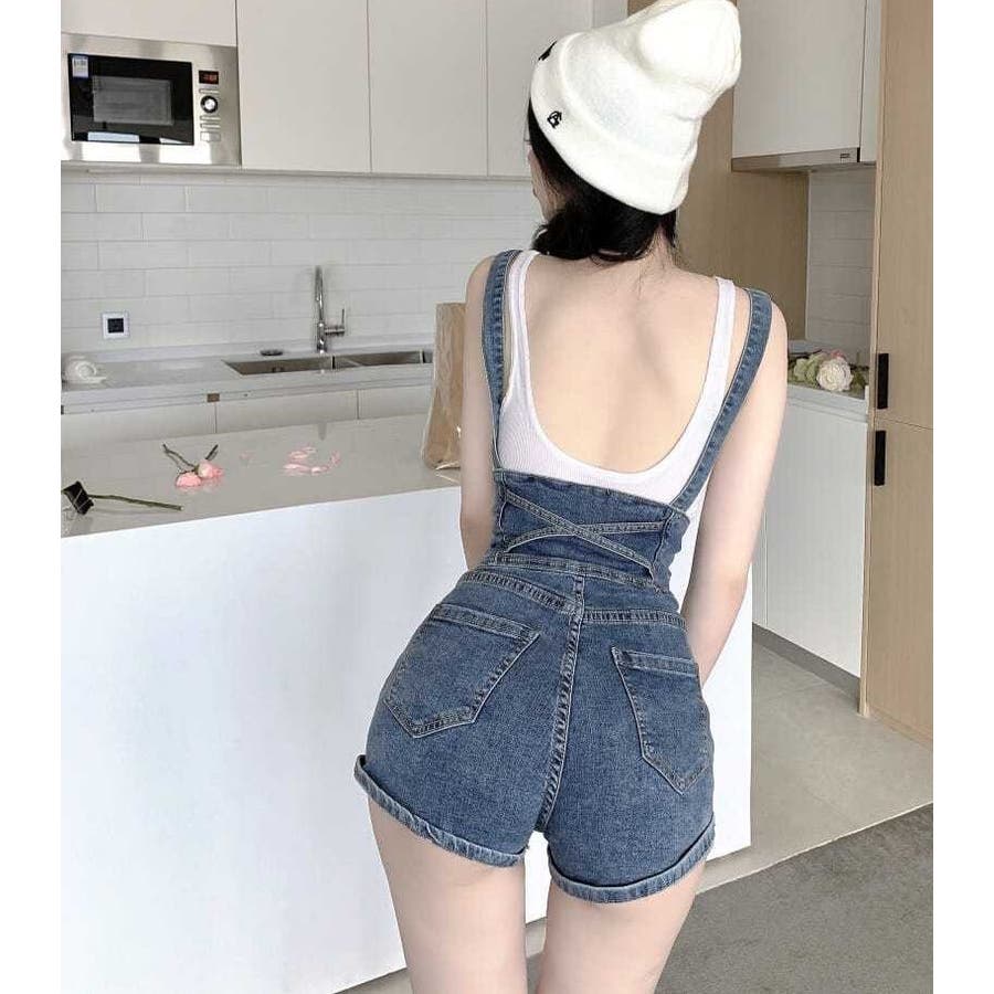 ショート丈+ハイウエストデザインのレディース用サロペットパンツです。