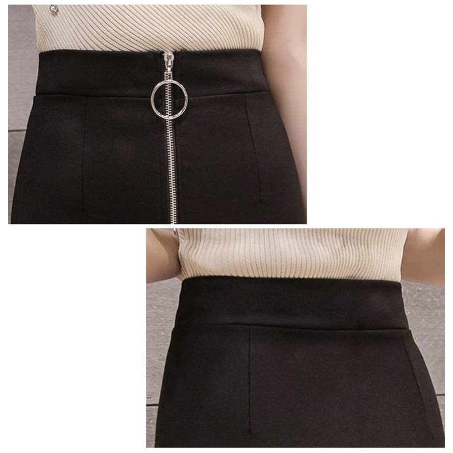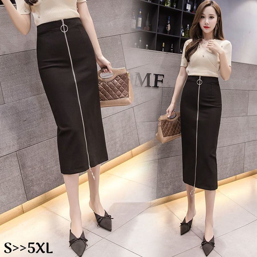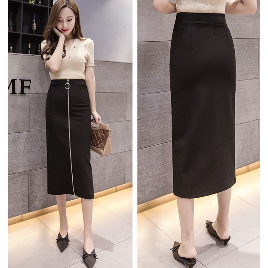 スリムシルエットのミディアム丈スカートです。