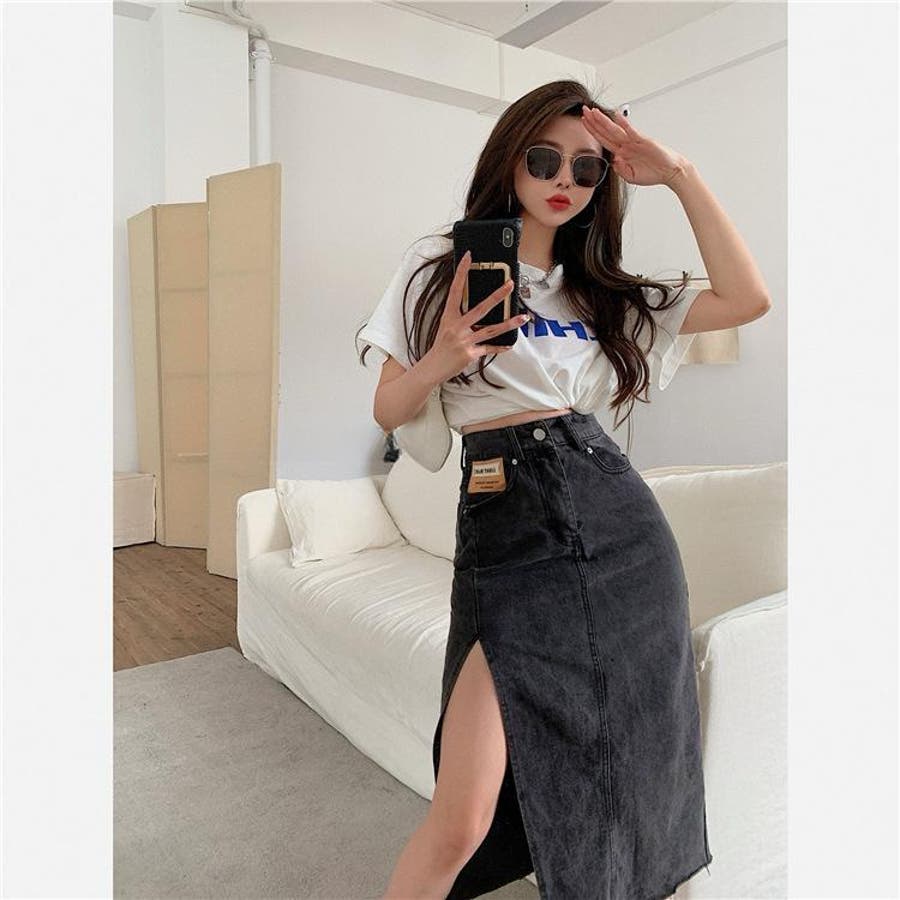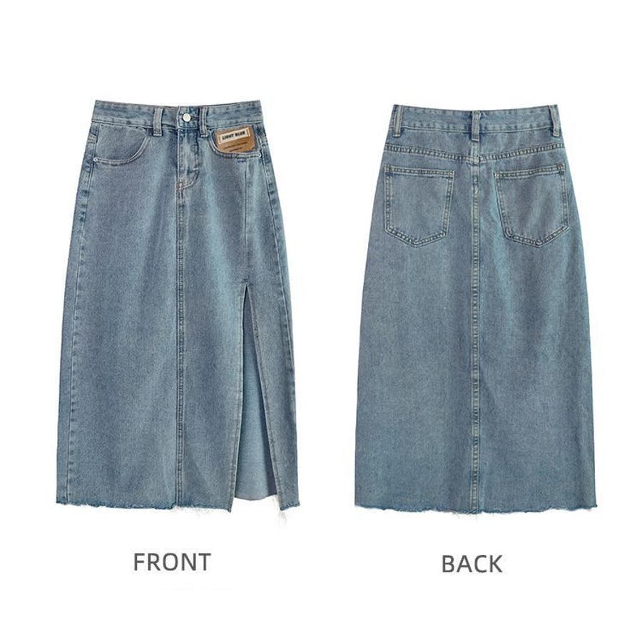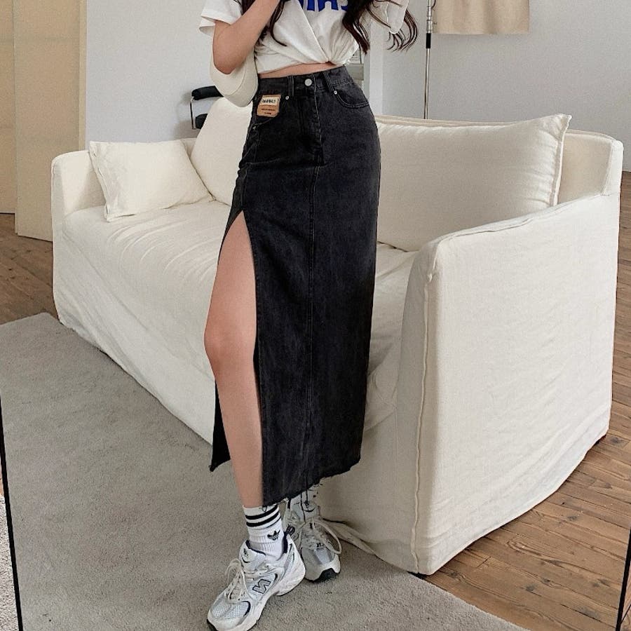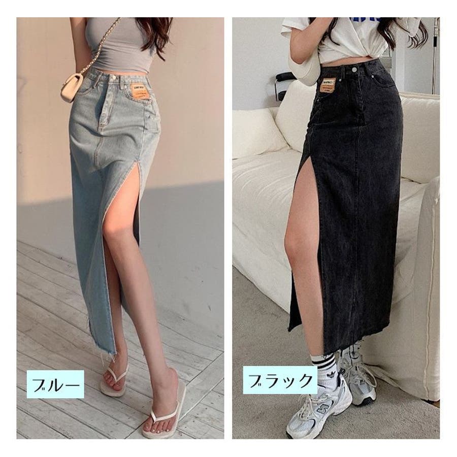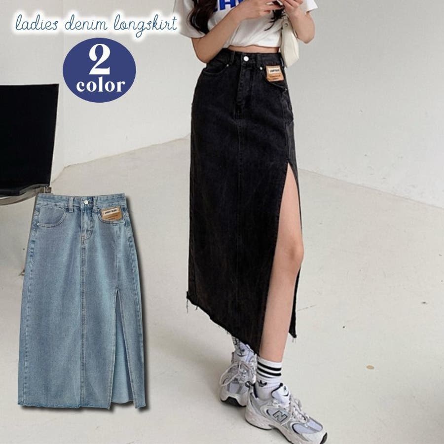 スタイルアップ効果抜群のレディースデニムロングスカート。