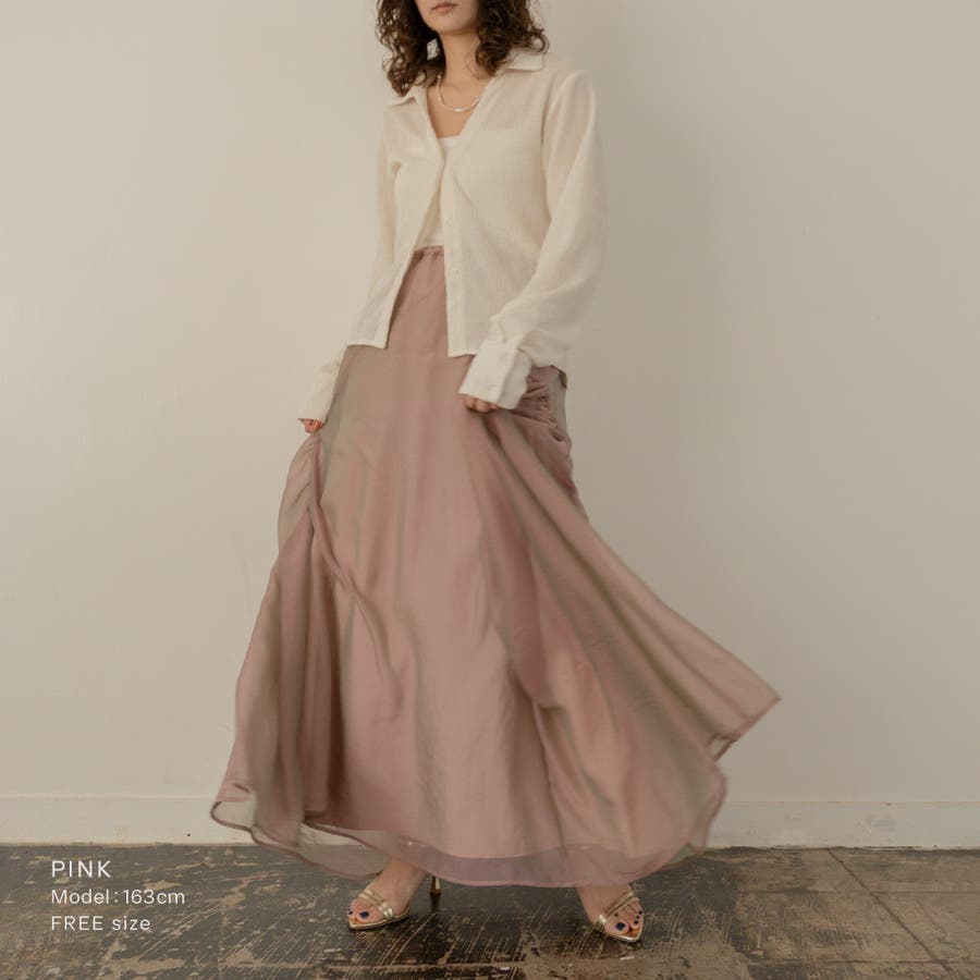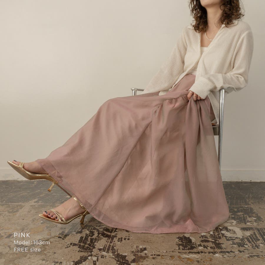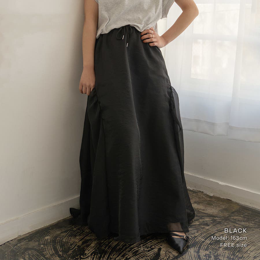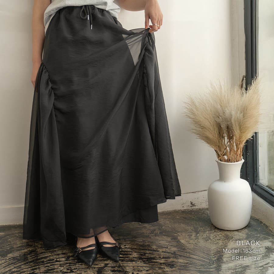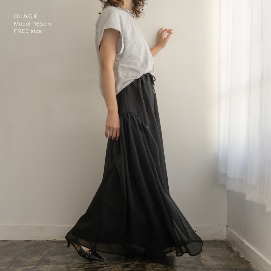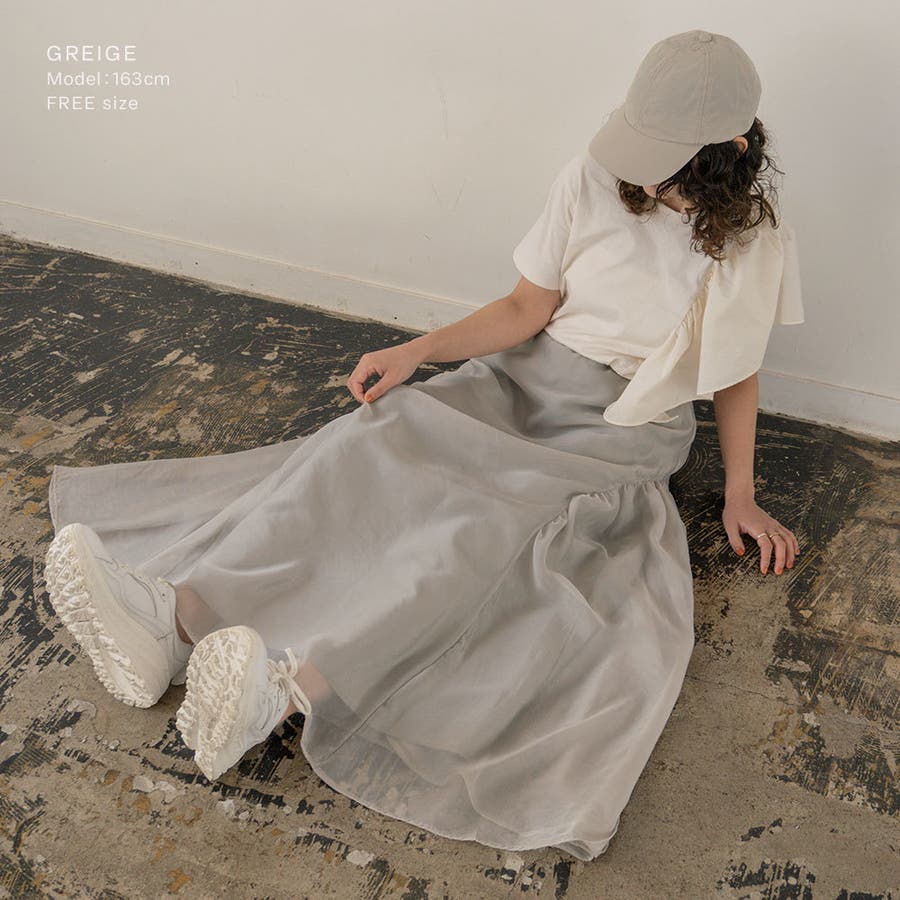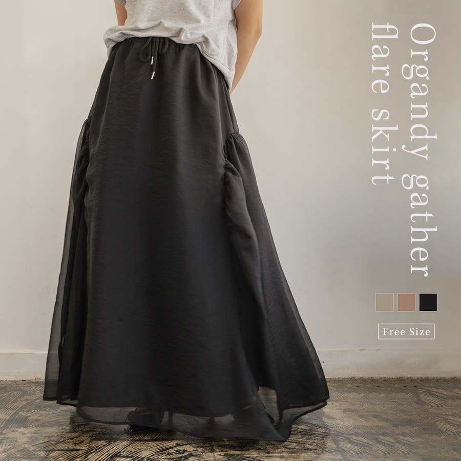オーガンジーギャザーフレアスカート フレアスカート シアー