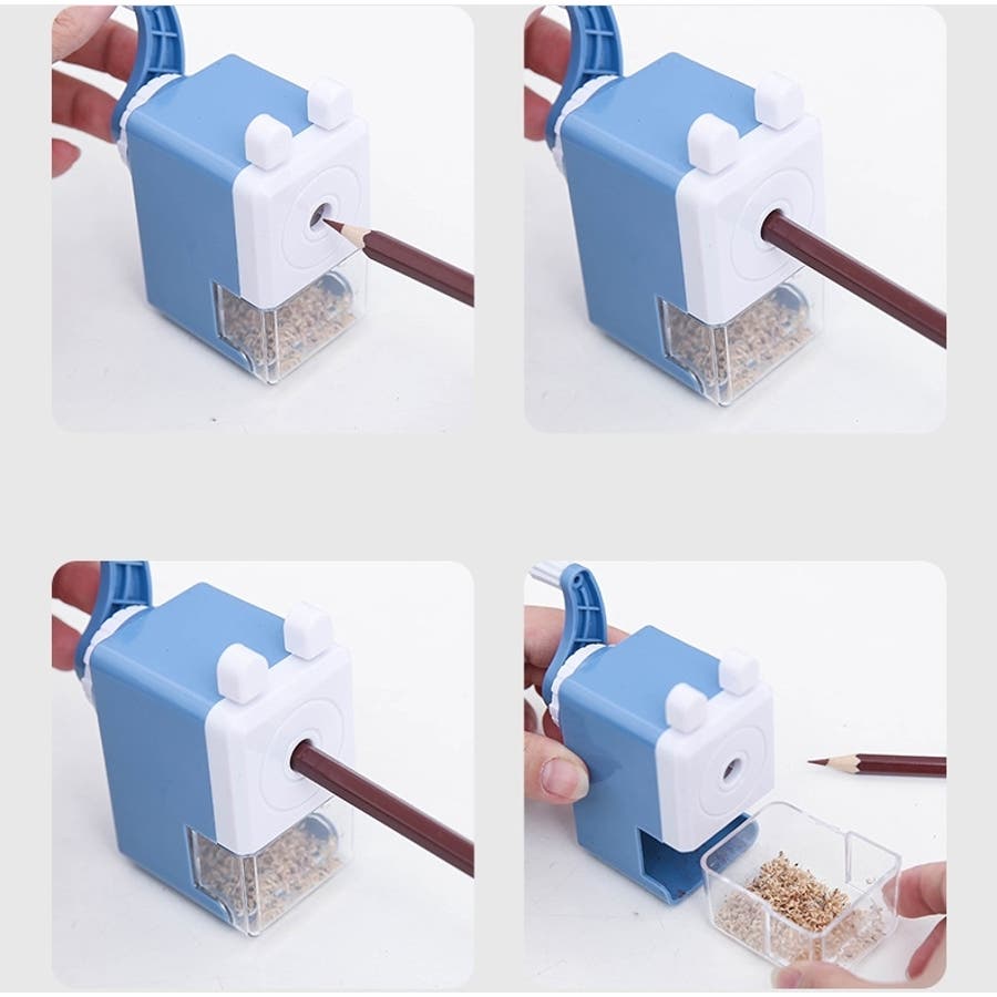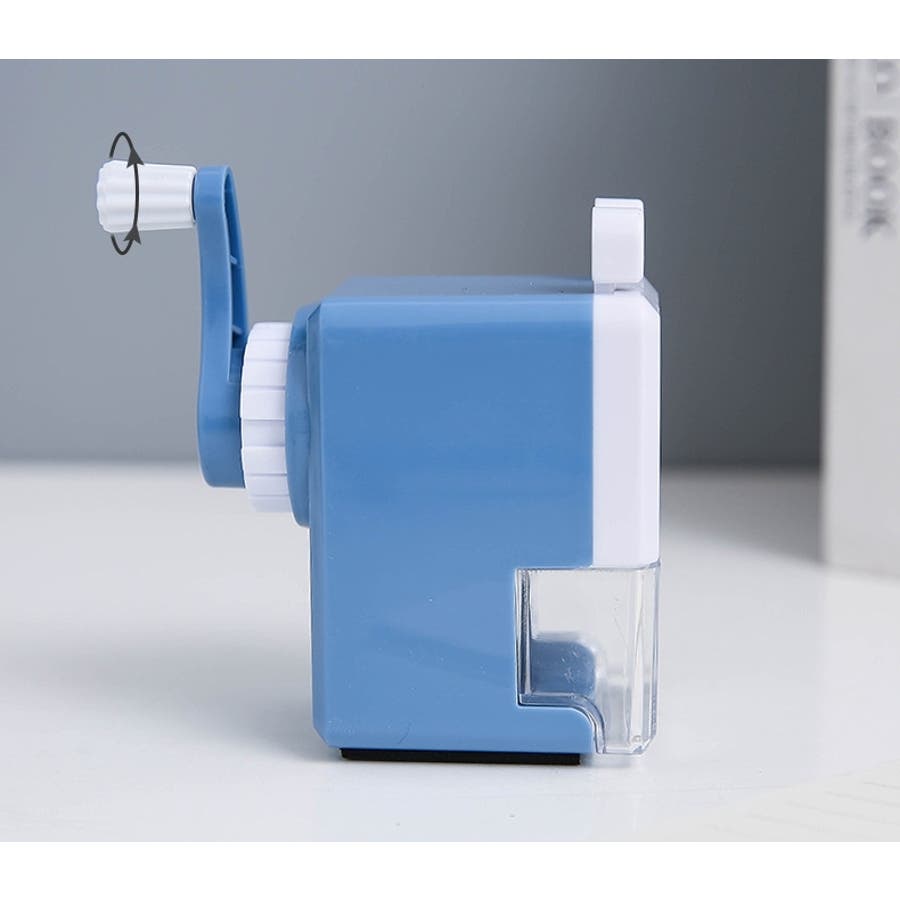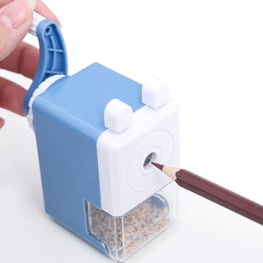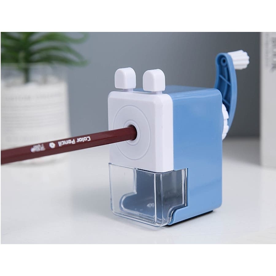 鉛筆を押し込んで取っ手を回すだけで削れます。