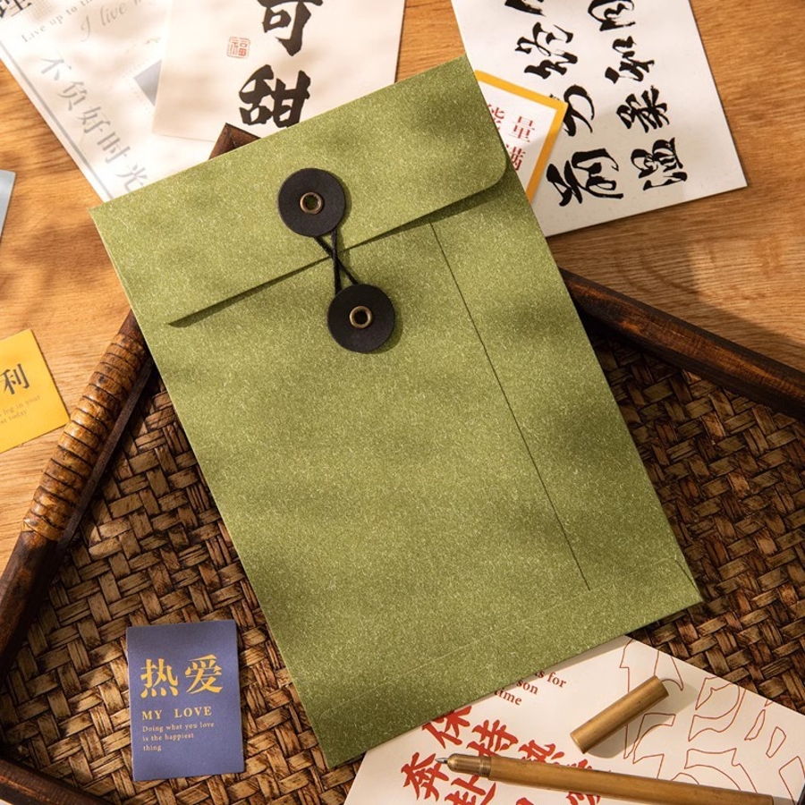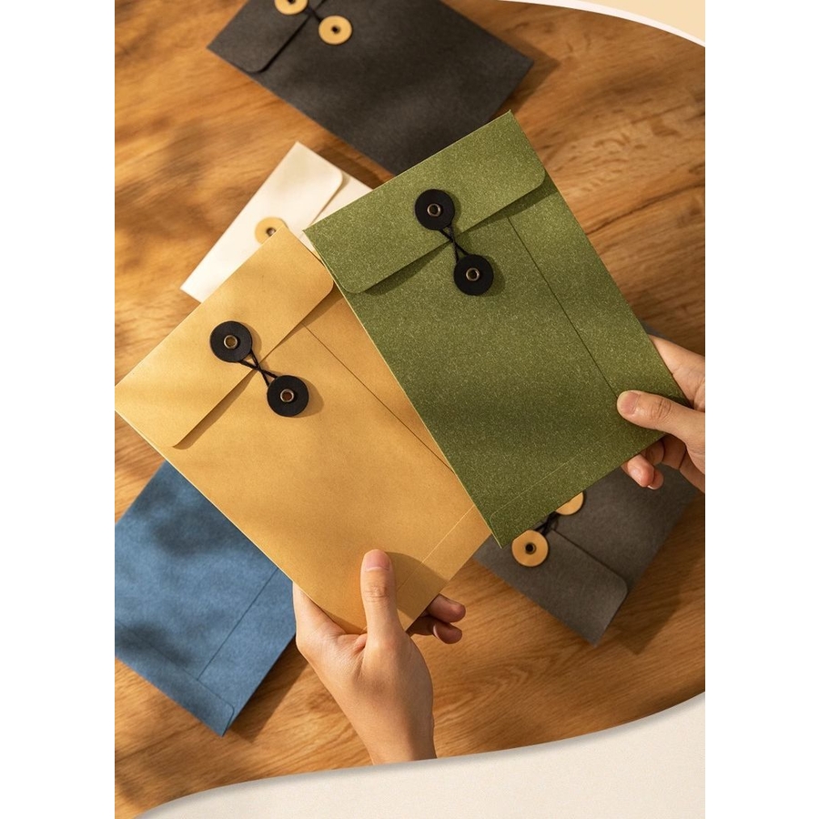 紐留めタイプのクラフト封筒同色3枚セットです。