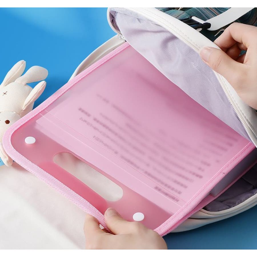 バッグ型なので持ち運びしやすく、書類の飛び出しを防ぐボタン付き!