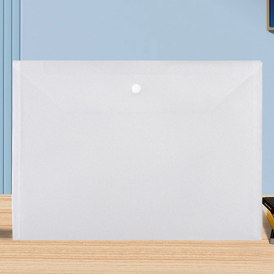 薄型のボタン留め式で、書類の持ち運びや整理に◎