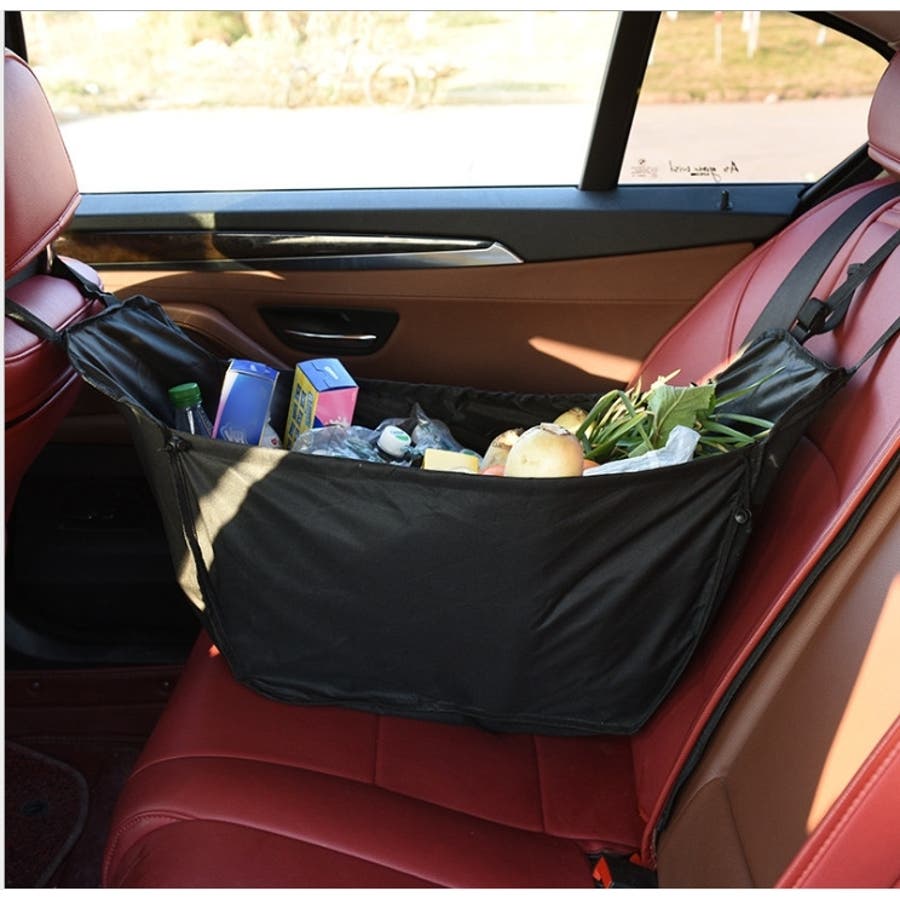 ヘッドレストに取り付けて使える収納ハンモックバッグです。