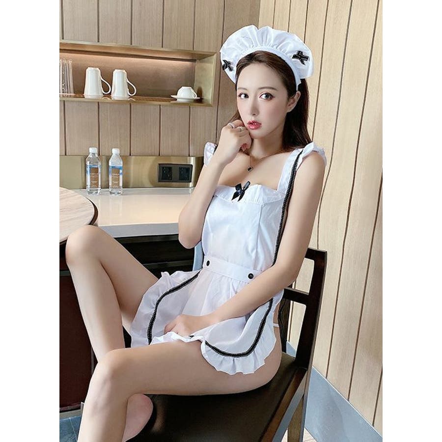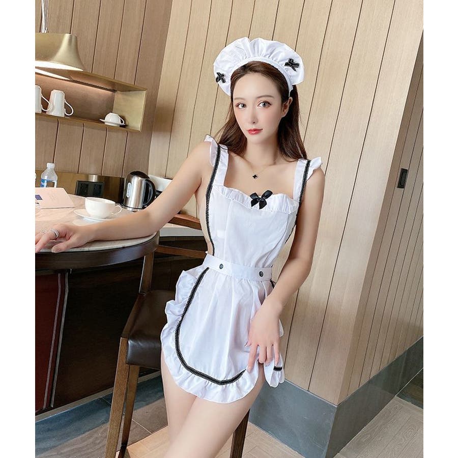 メイド風コスプレのベビードール&カチューシャ2点セットです。