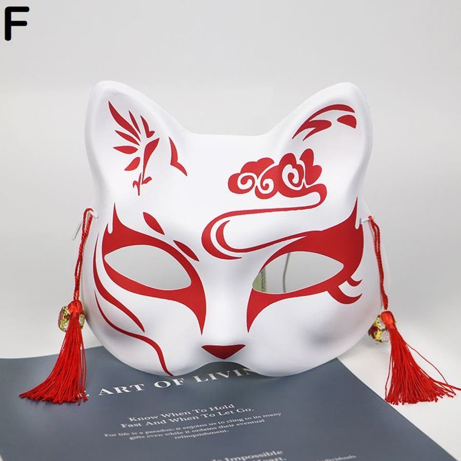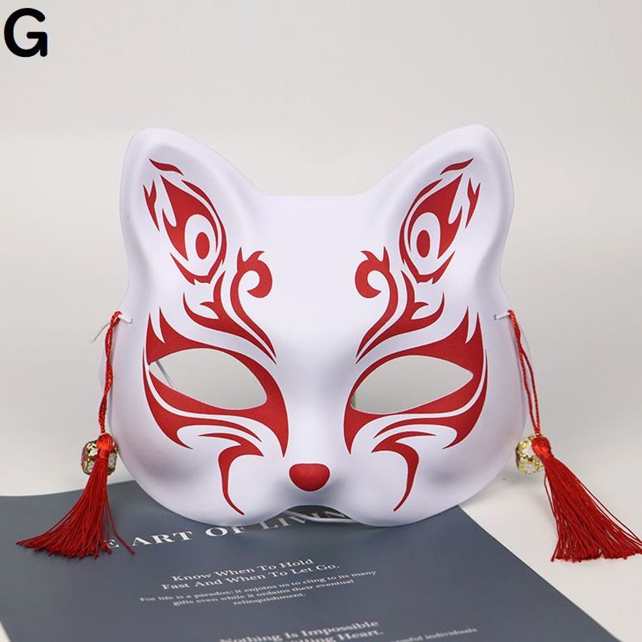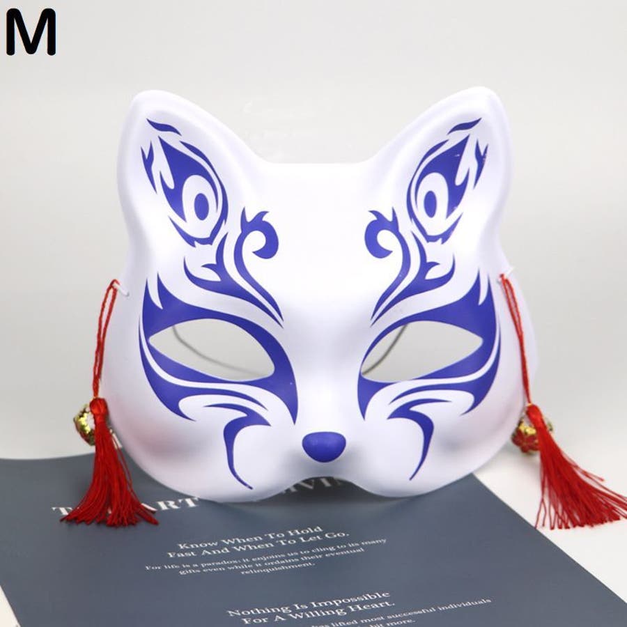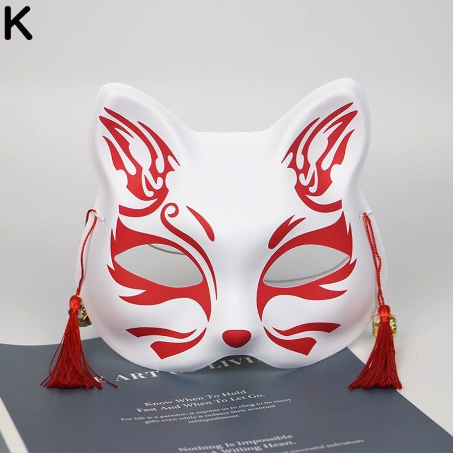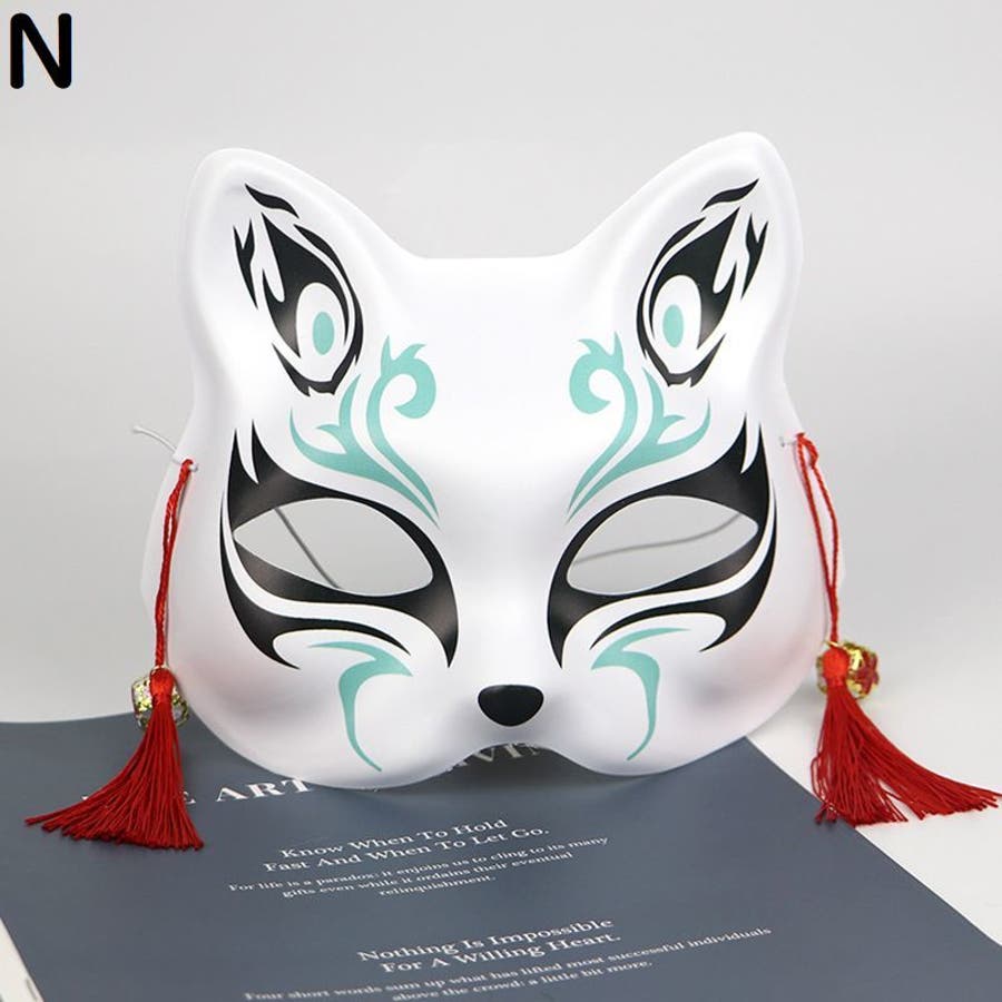 狐風デザインの鈴&タッセル付きマスクです。