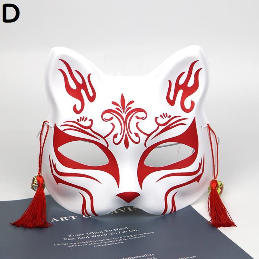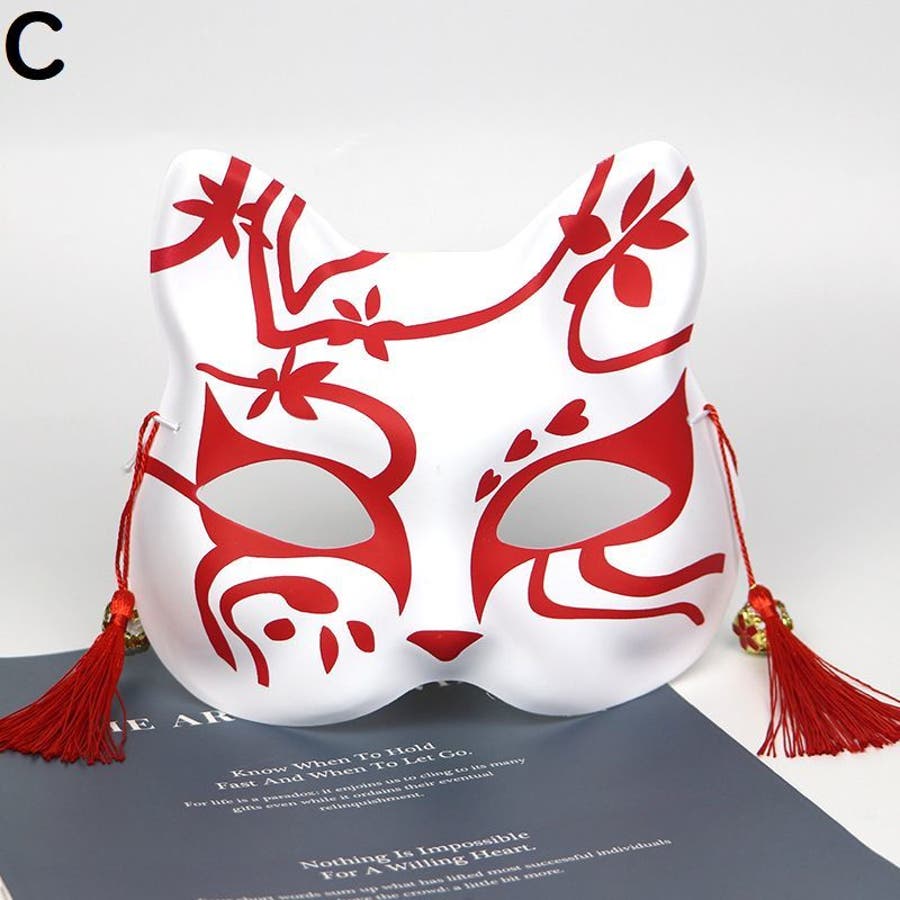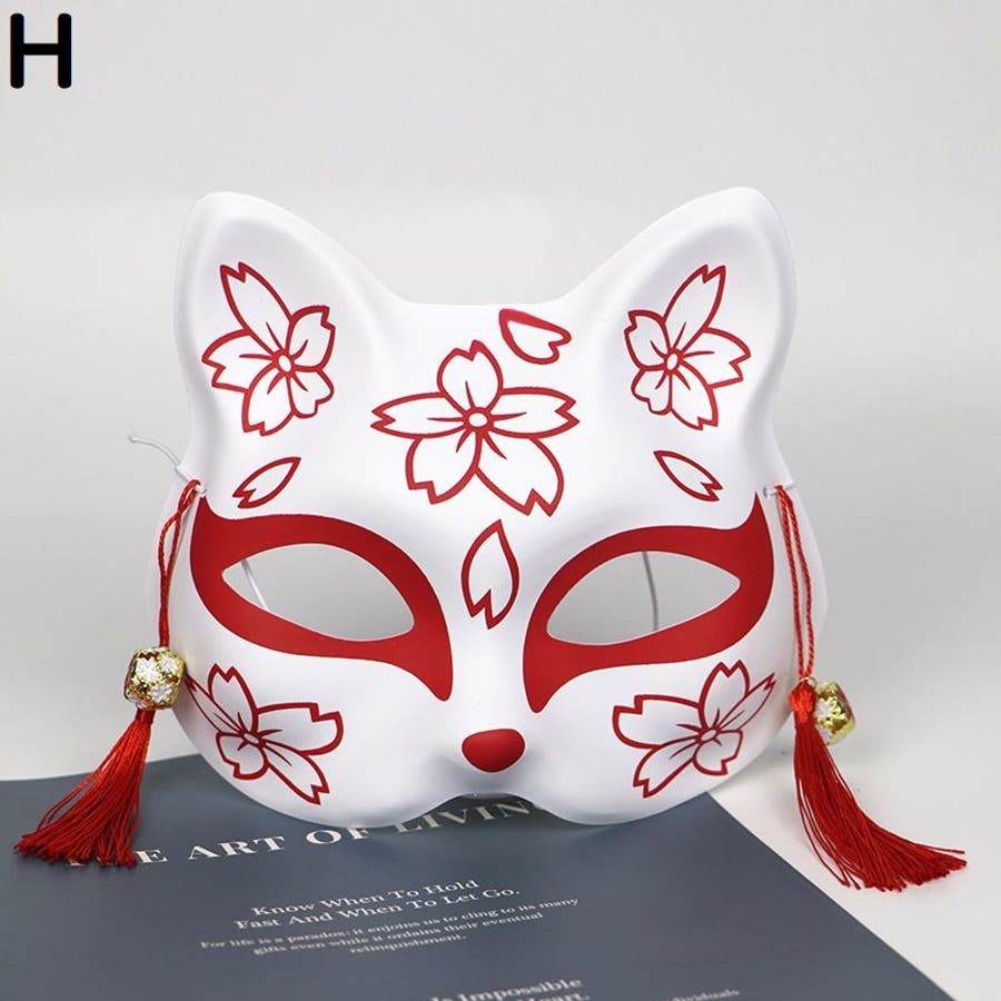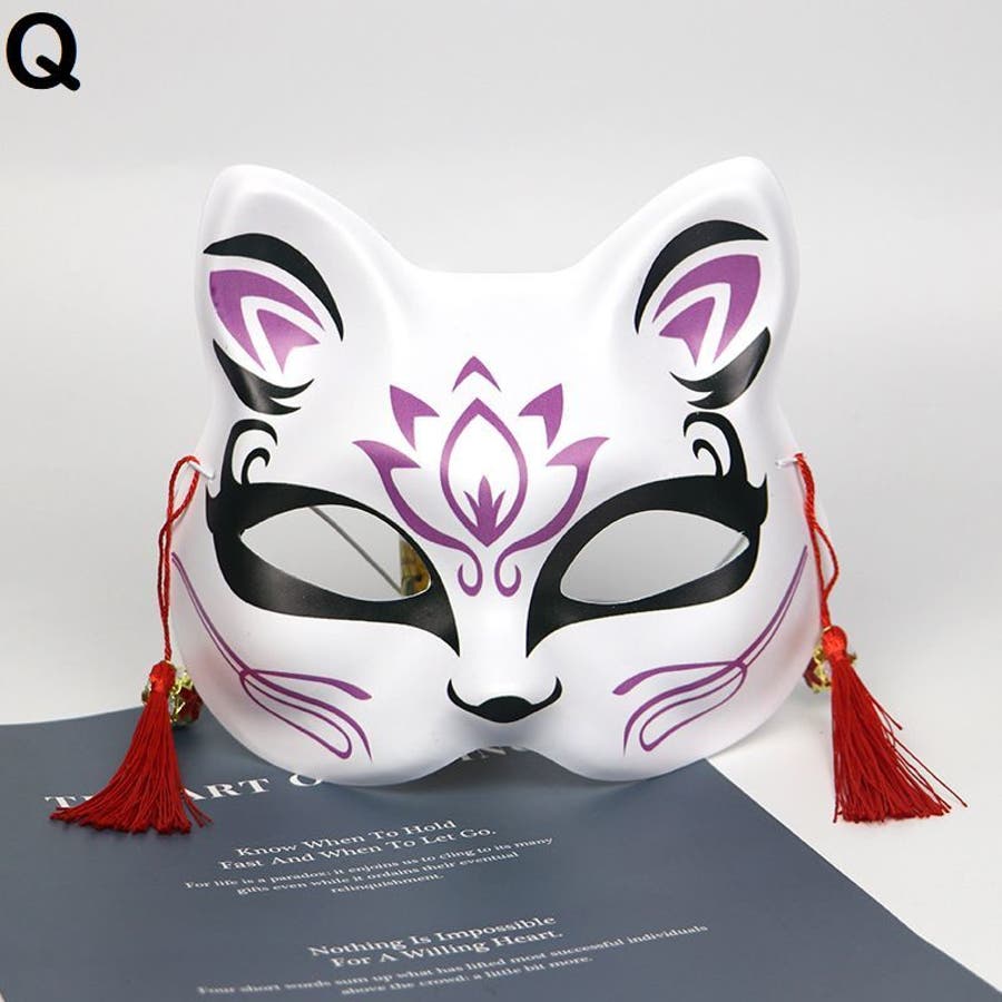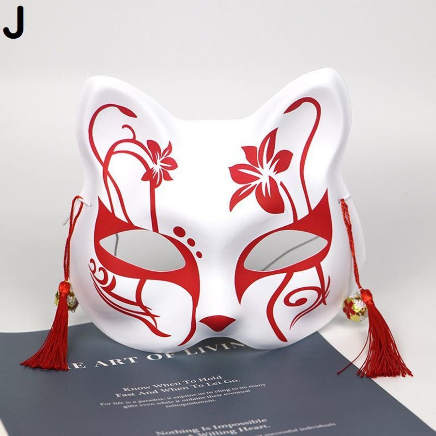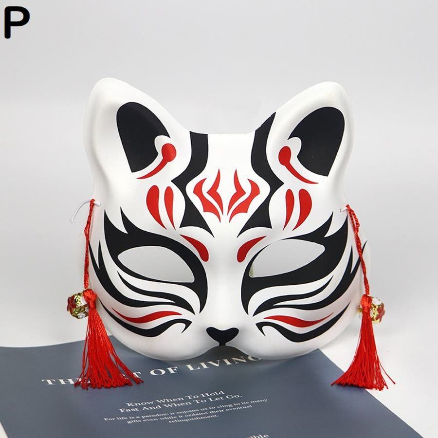 狐風デザインの鈴&タッセル付きマスクです。