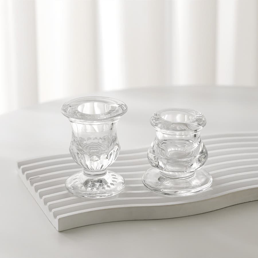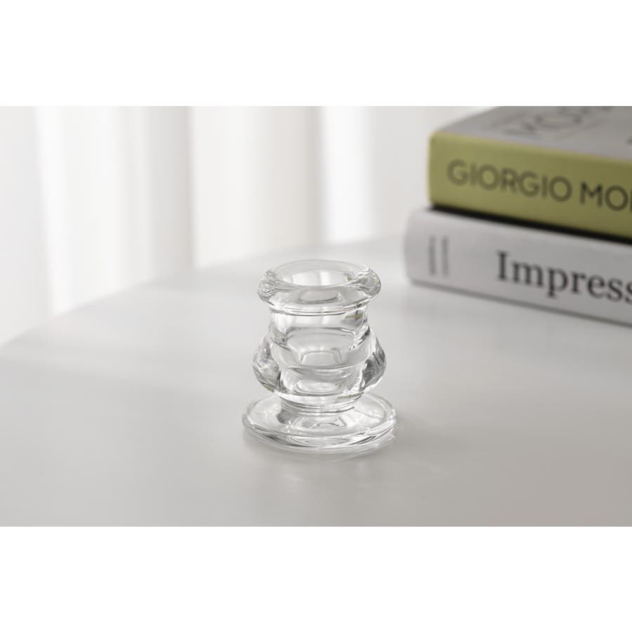ピラーキャンドル用のガラス製ロウソク立てです。