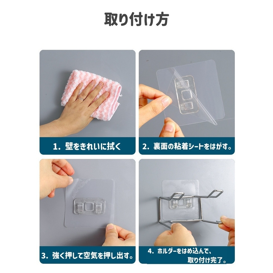 粘着シートで壁にしっかり固定でき、工具不要で簡単設置。