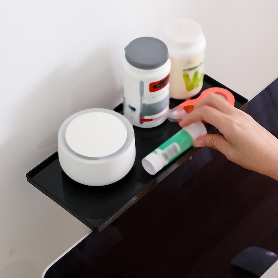 簡単設置で小物を収納できるモニター用ディスプレイボードです。