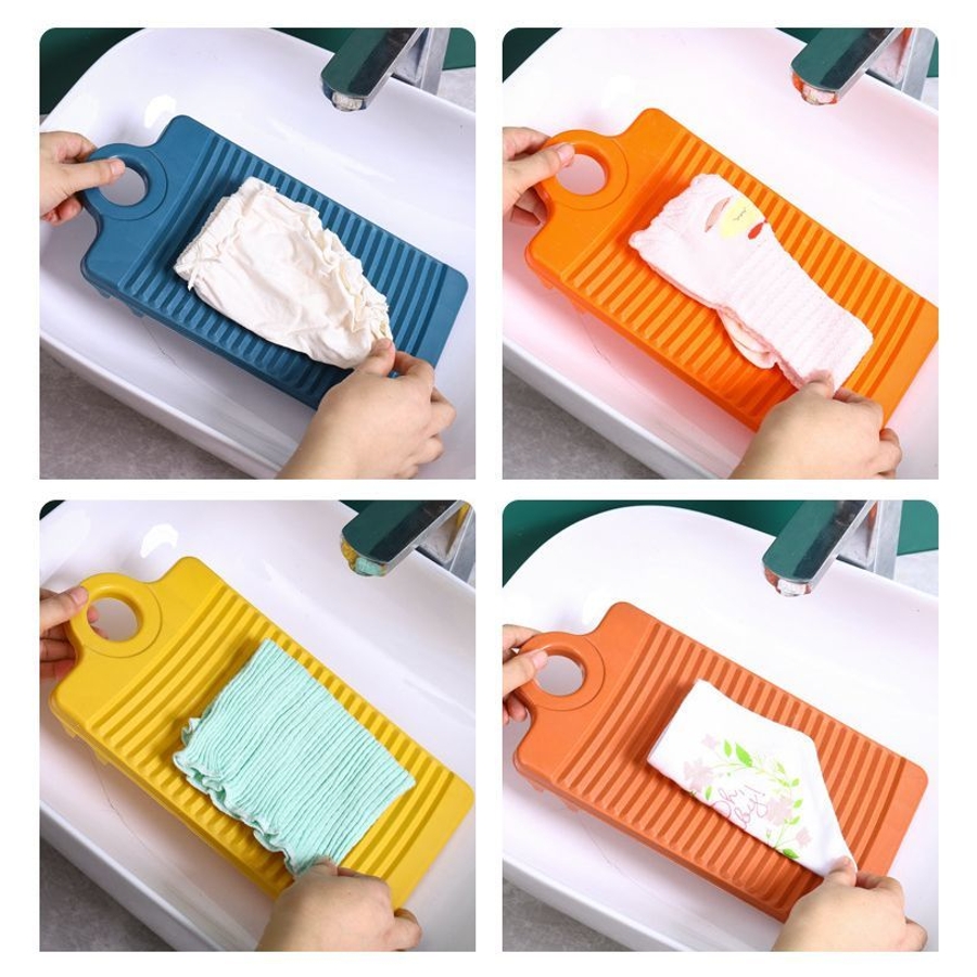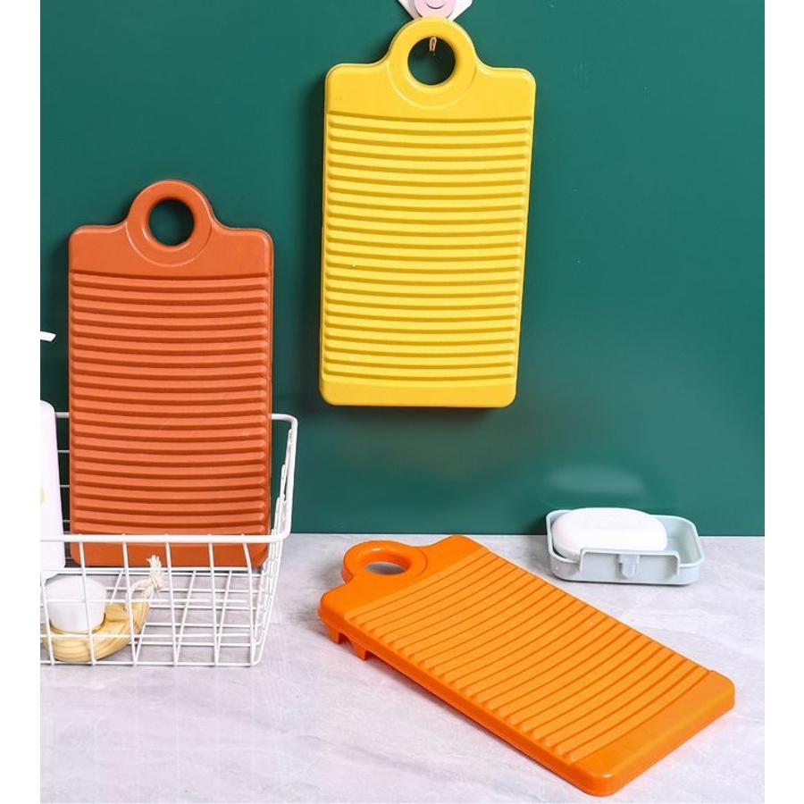 吊り下げ収納可能なループ穴付きの洗濯板です。