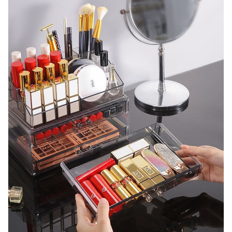 上下が外れて届いて固定出来なかったので瞬間接着剤を使って固定しました。リップスタンドが少し短くて少し長めのものを入れると落ちそうになりますがそれ以外は使いやすくて気に入りました。