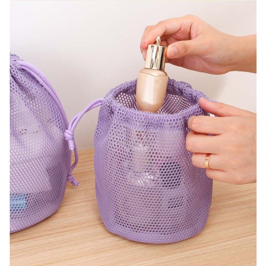 携帯便利な巾着袋タイプのメイクポーチです。