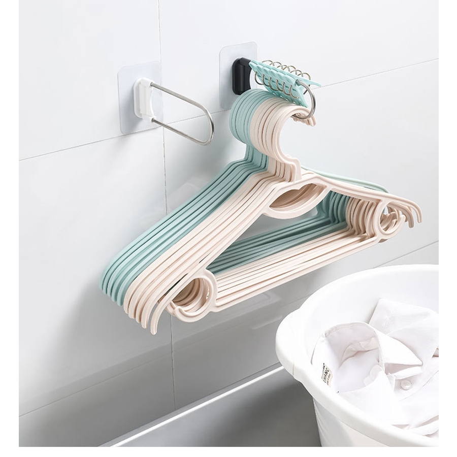 粘着式の壁掛けハンガー収納ラック同色2個セットです。