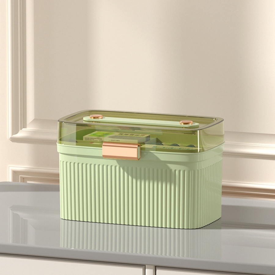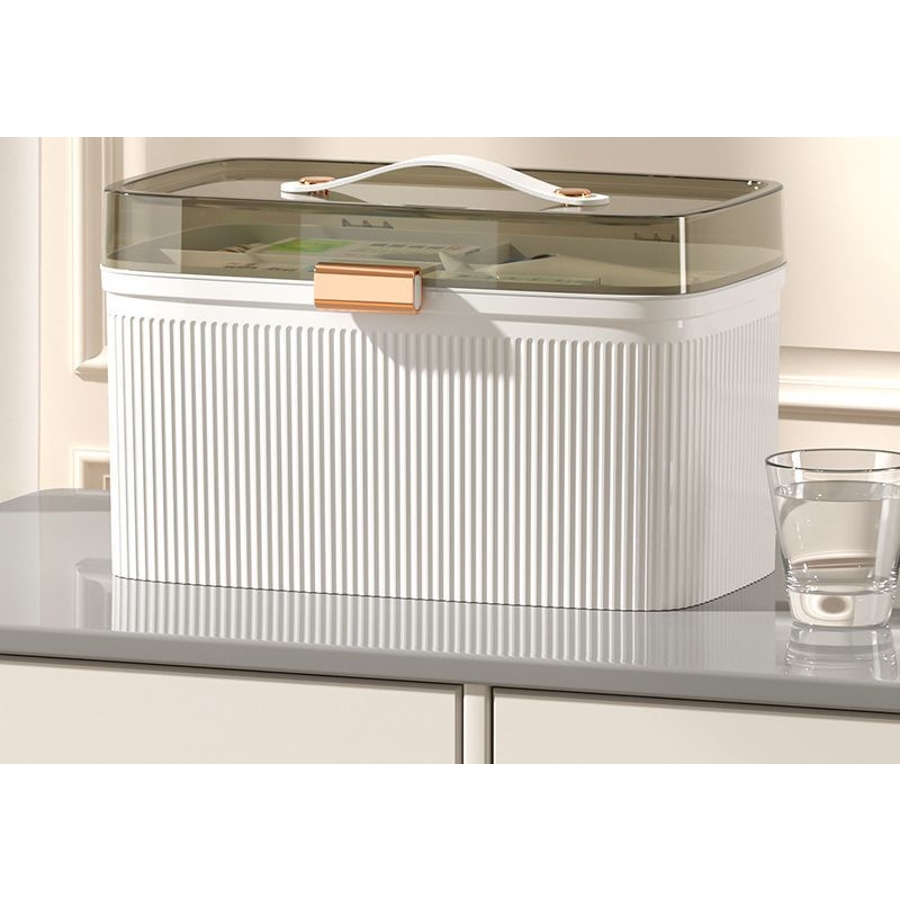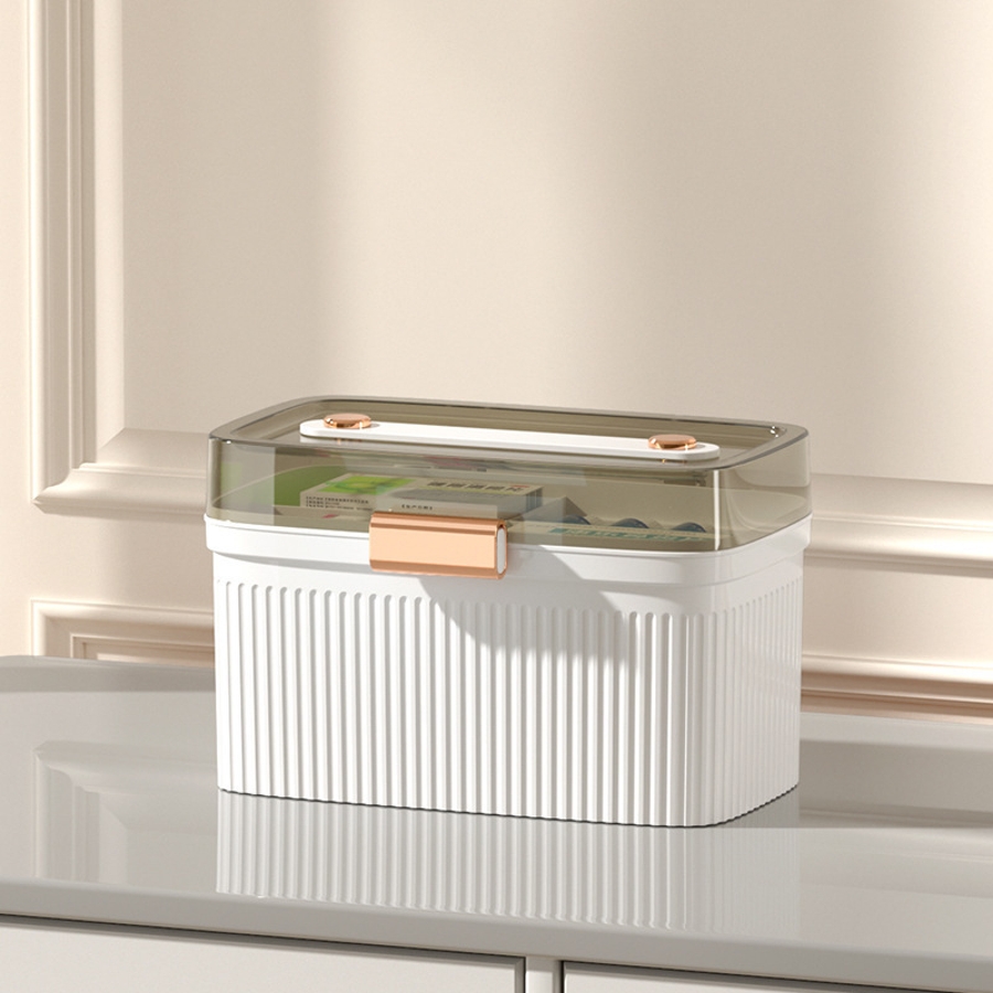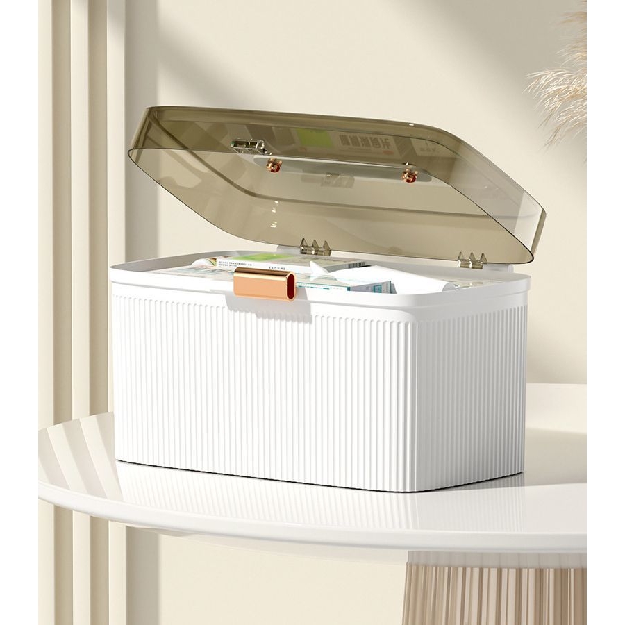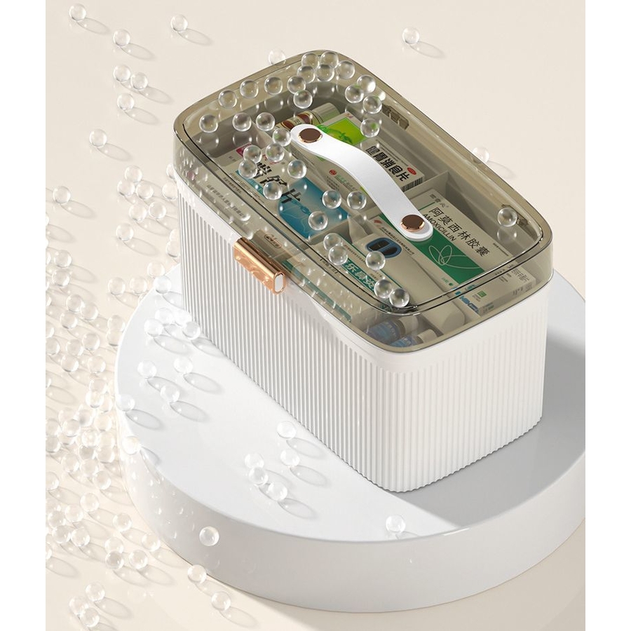 携帯便利な取っ手付き!ロック機能付属の卓上救急箱です。