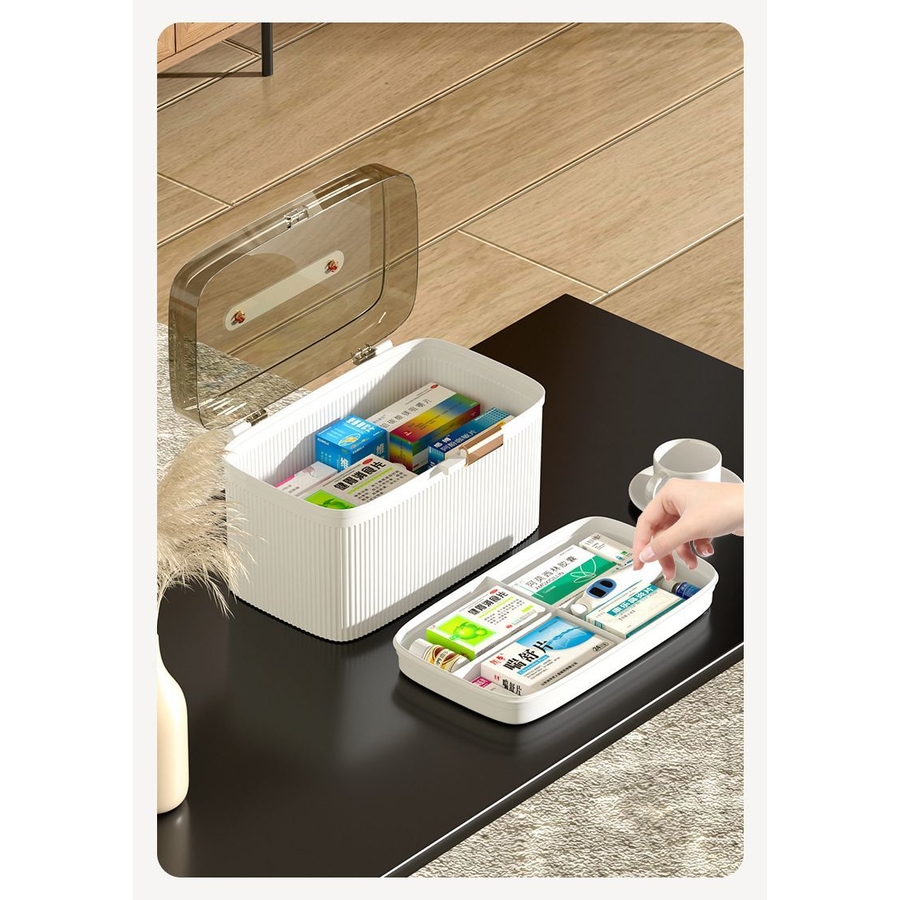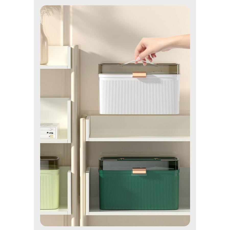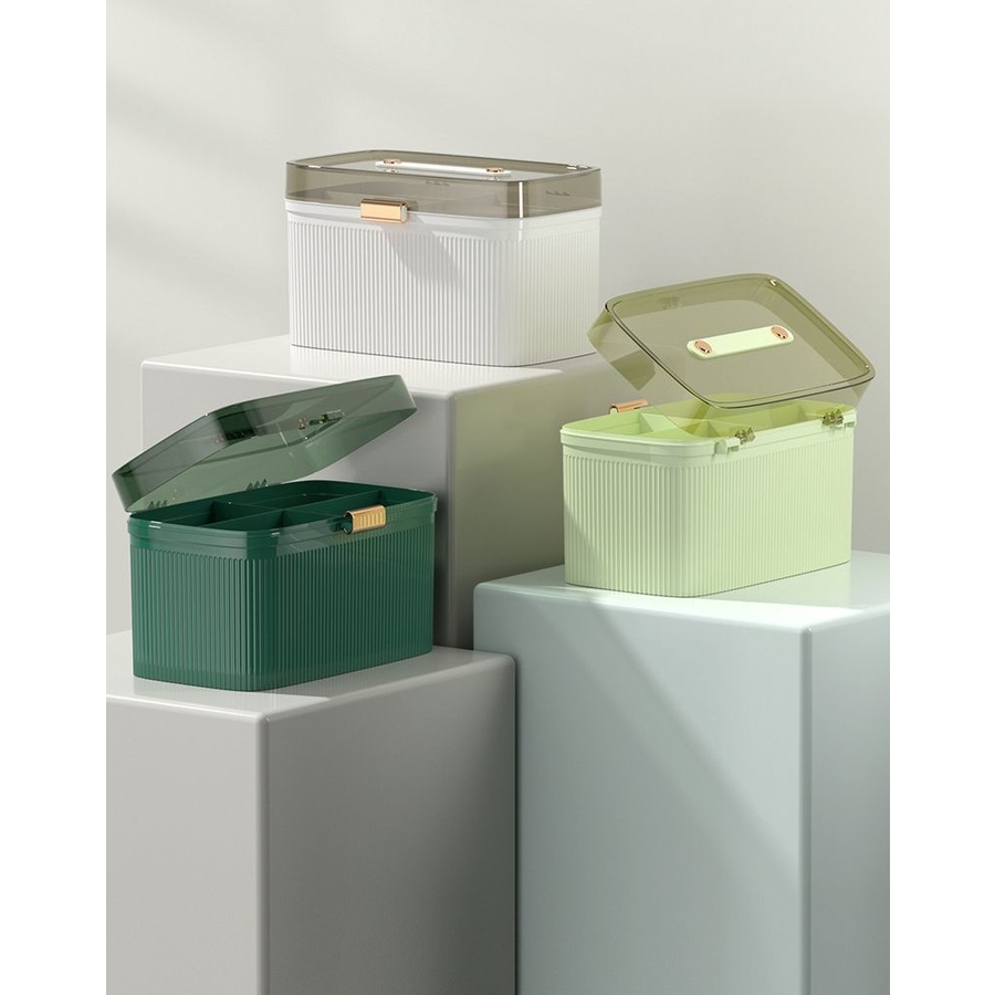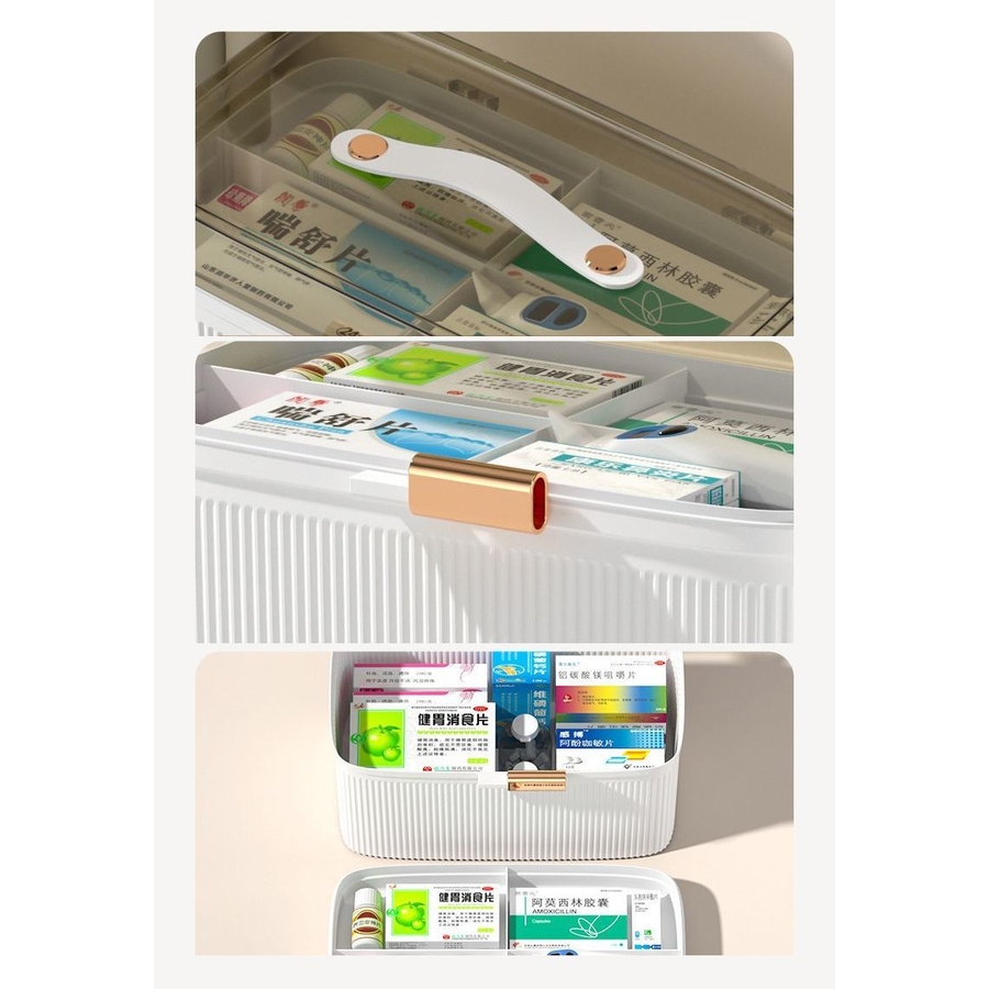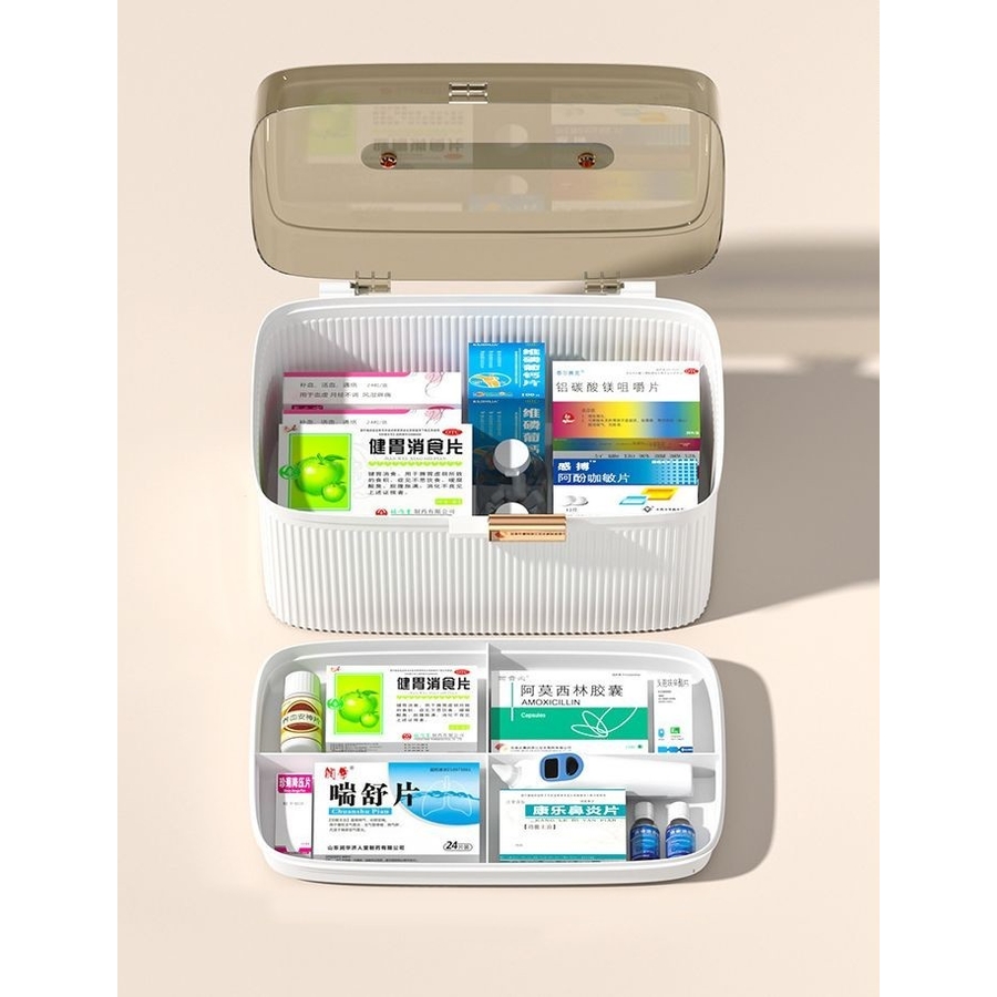 携帯便利な取っ手付き!ロック機能付属の卓上救急箱です。