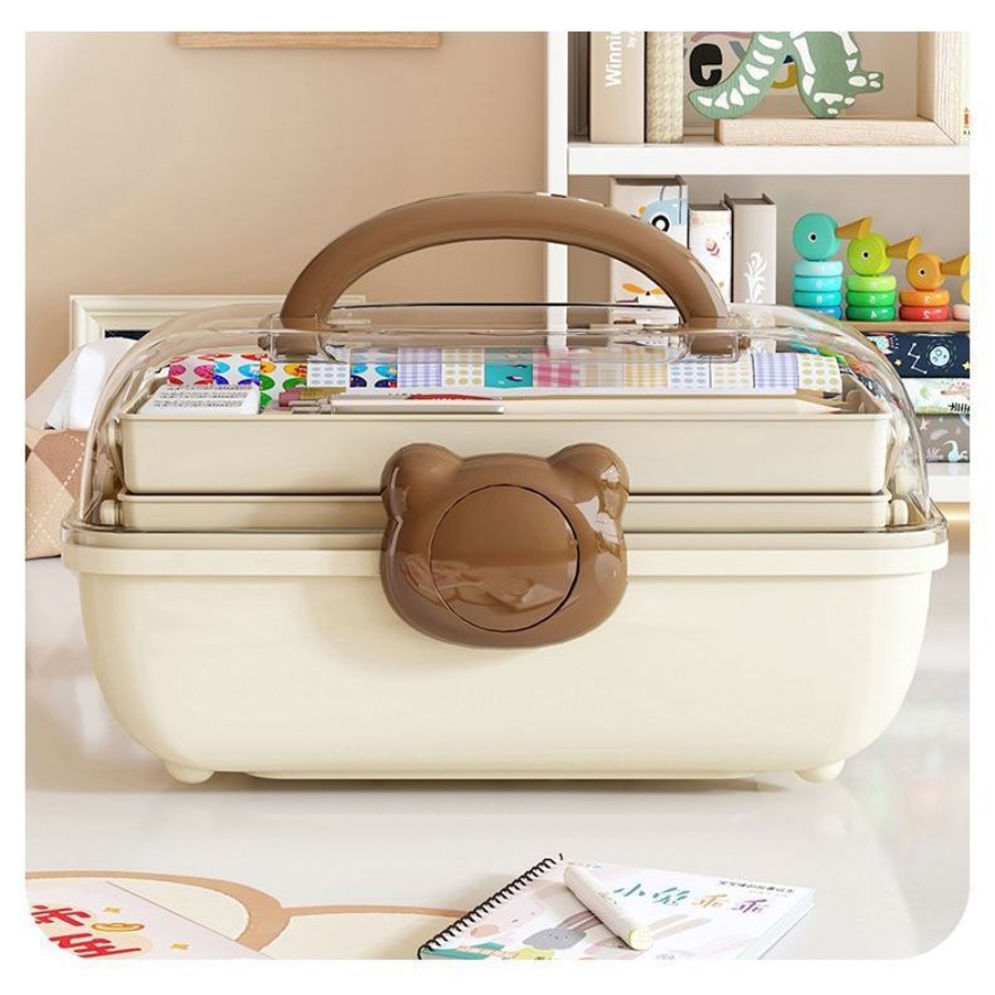 クマデザインが可愛い3段タイプの収納ボックスです。