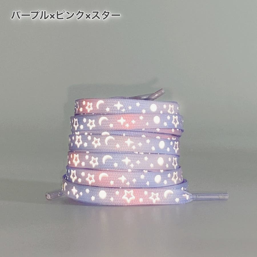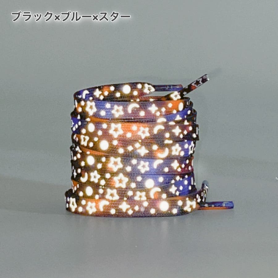 反射材を使用したスター柄とハート柄が、光に反応して色鮮やかに見えます♪