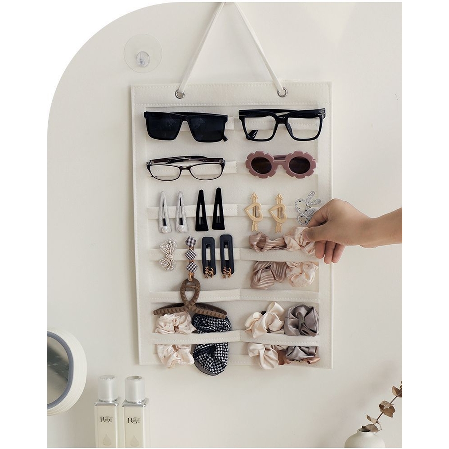 ヘアアクセサリーや眼鏡などの小物類を壁に掛けて収納できます◎