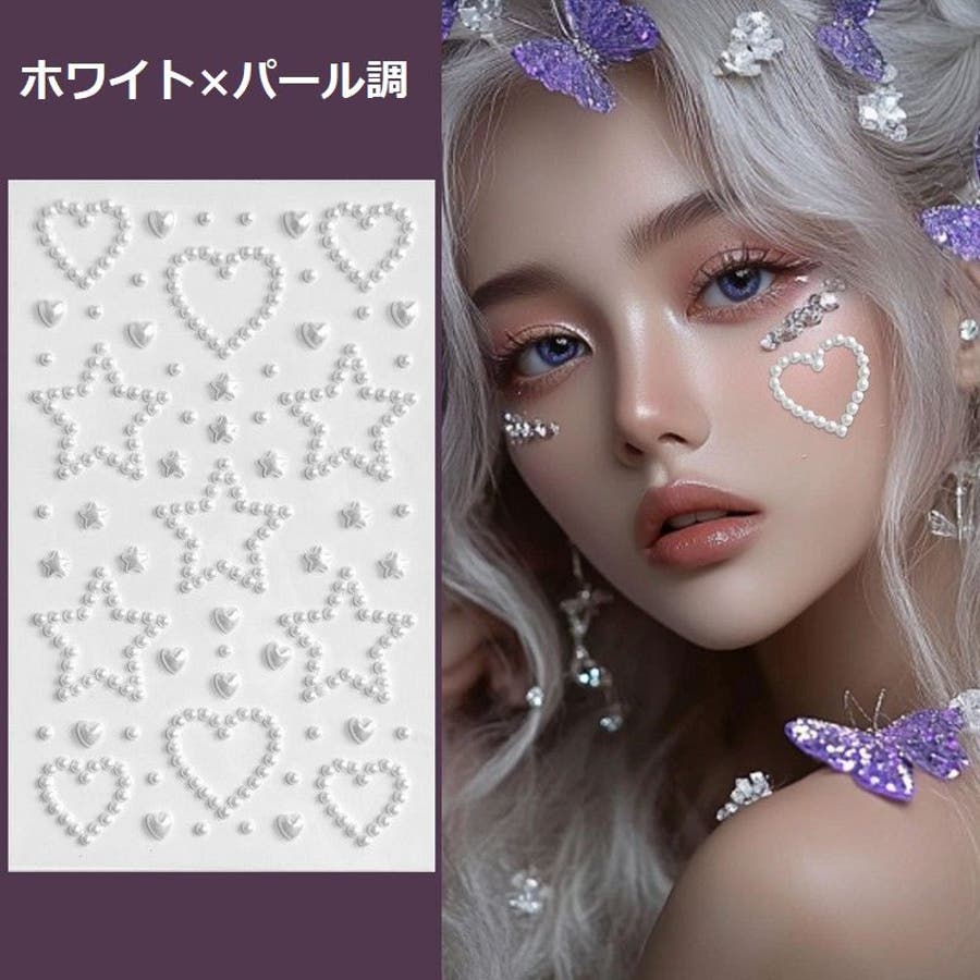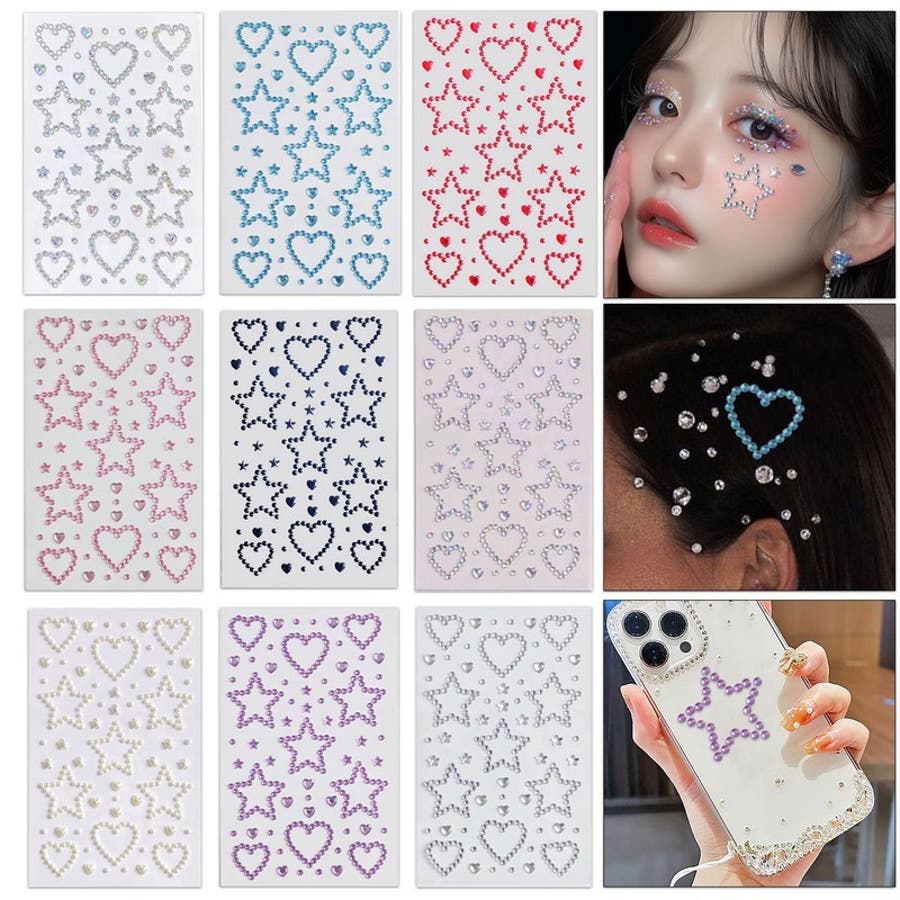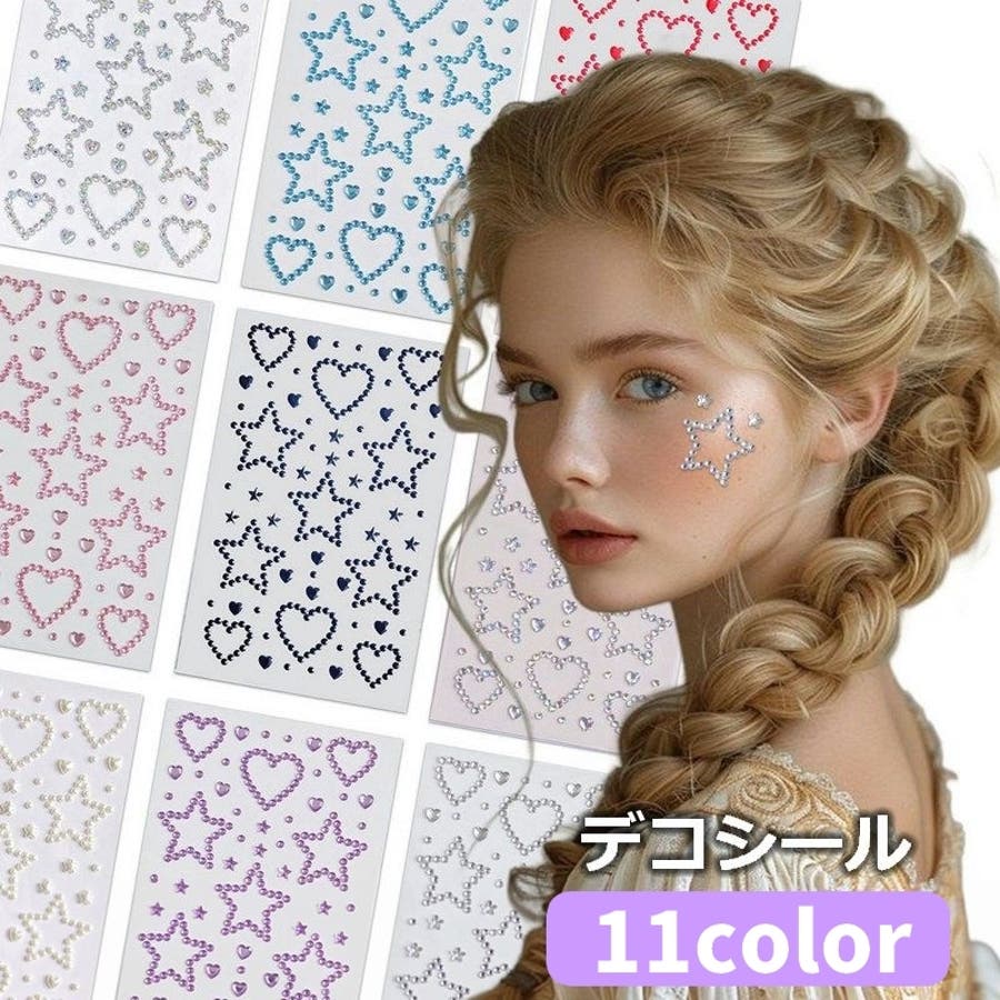 ラインストーンやフェイクパールのハートや星型がかわいいデコシールです。
