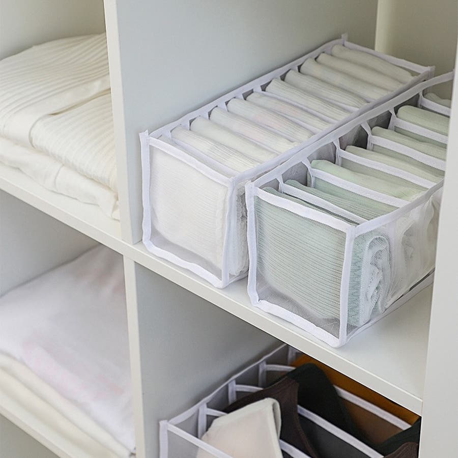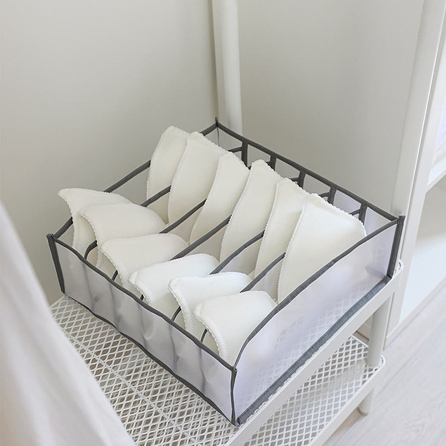 6マス・7マス・16マスの仕切りがついた衣類収納ケースです。
