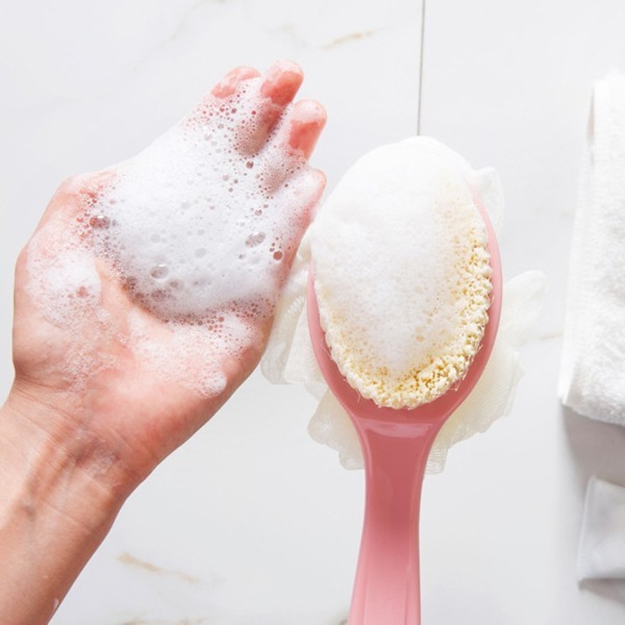 片面はブラシタイプ、片面はスポンジタイプで、部位ごとに使い分けも可能♪