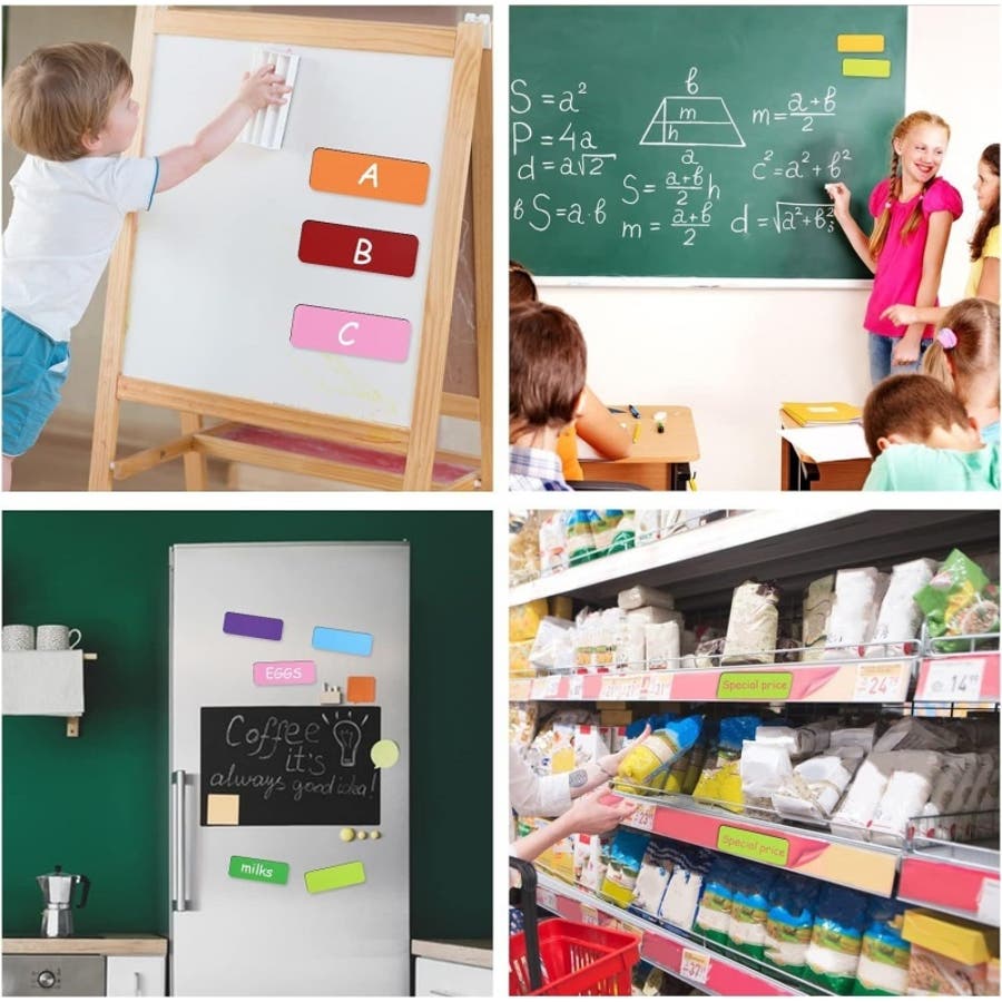 黒板や冷蔵庫などに貼り付けられ、書いて消せるので繰り返し使えます。