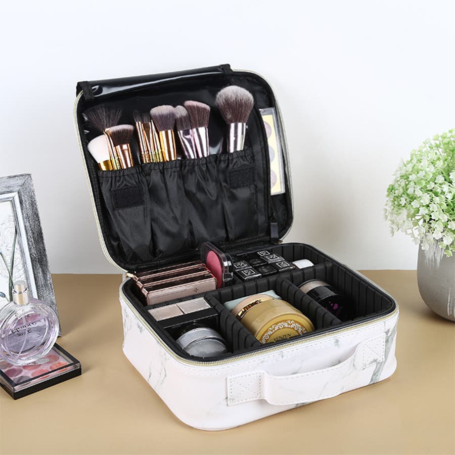 仕切りやポケット付きで、メイクグッズをスッキリと収納できます◎