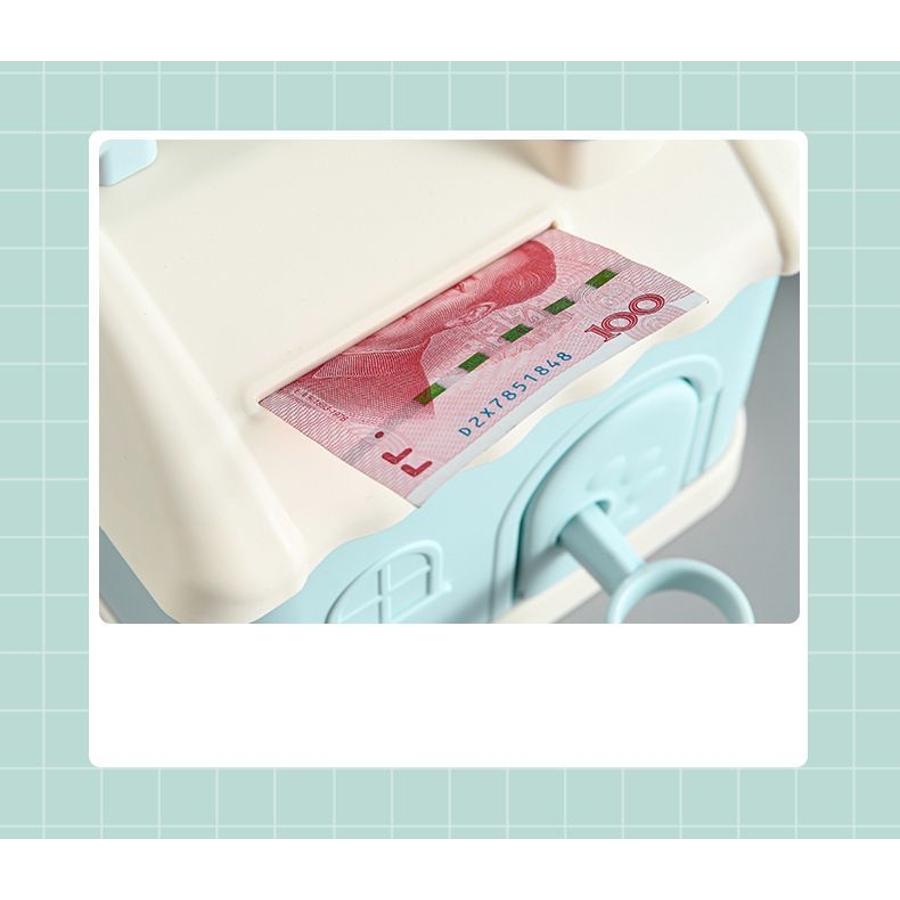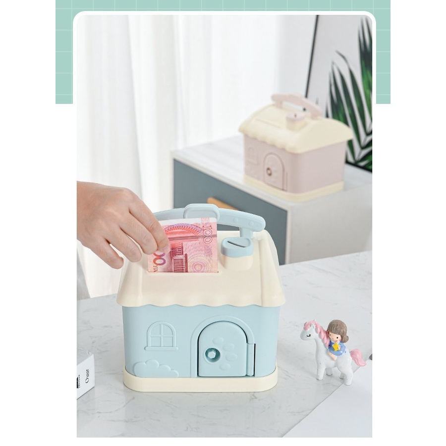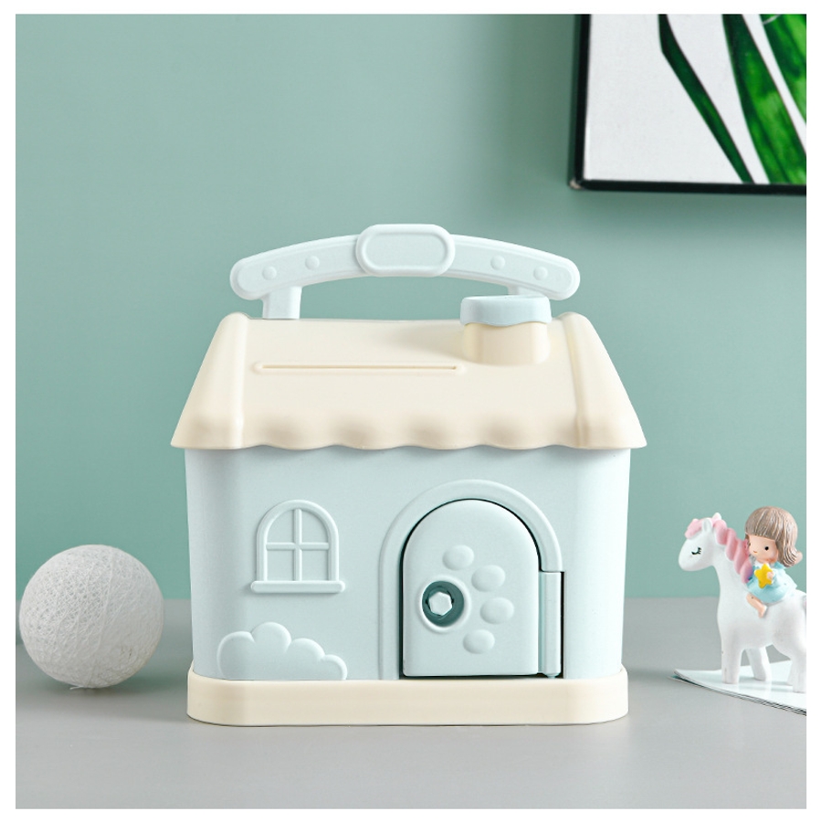 かわいいハウス型の鍵付き子供用貯金箱です。
