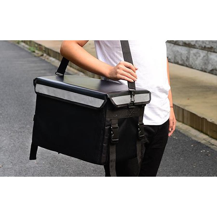 配達用としても活躍し、自転車の荷台に取り付けて使える便利な設計◎