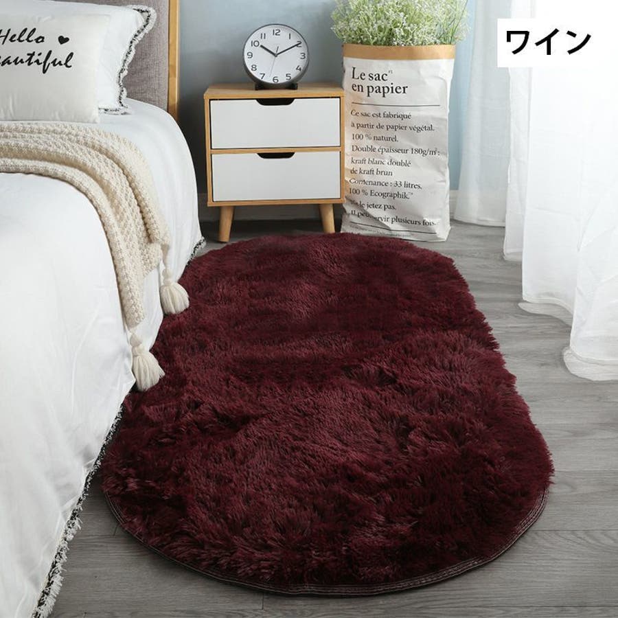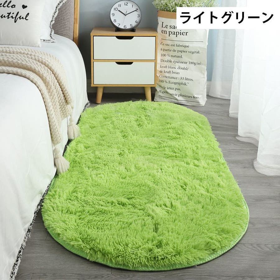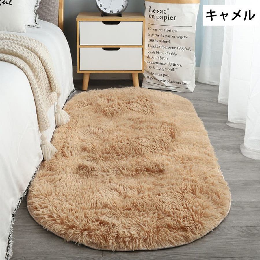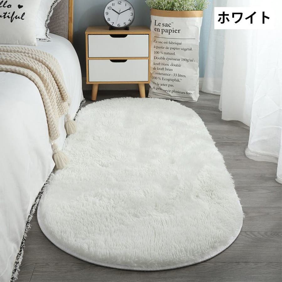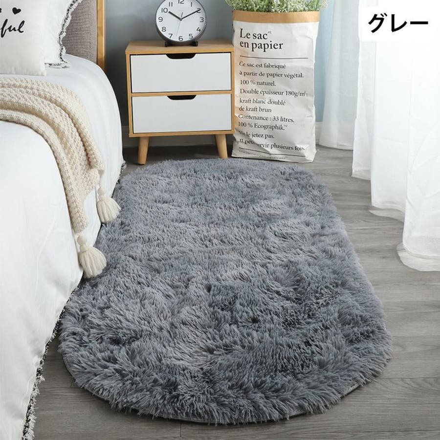 楕円形のシンプルデザインで、ソファーやベットの足元にぴったりですね◎