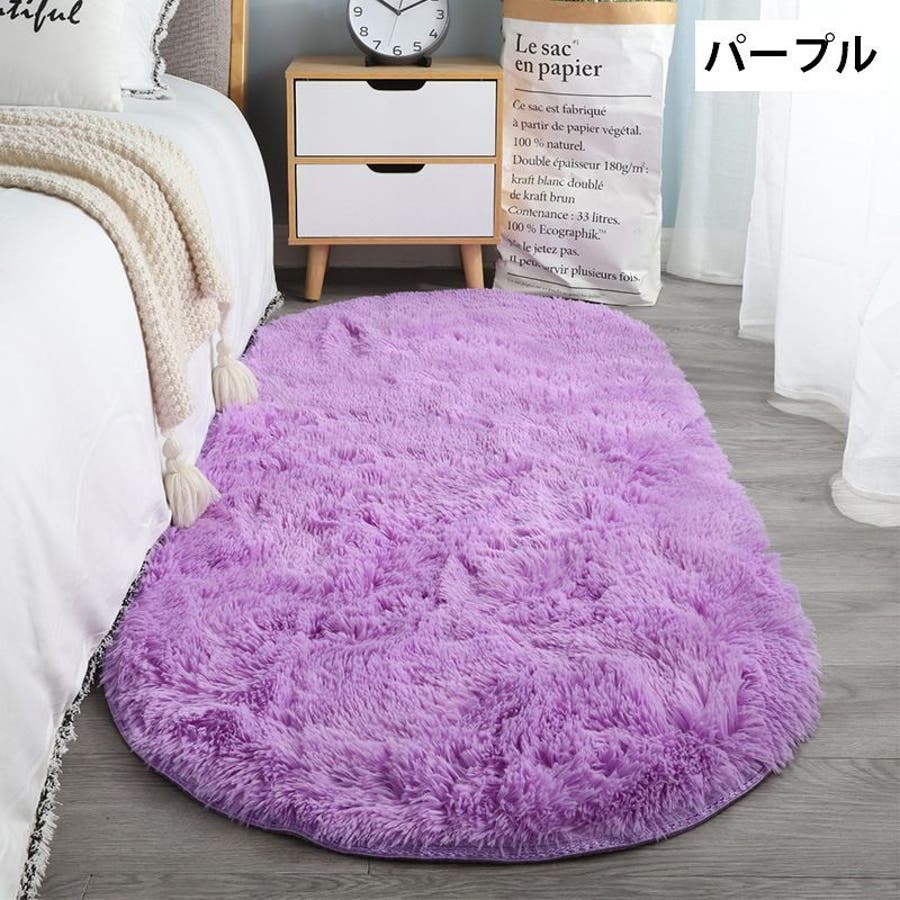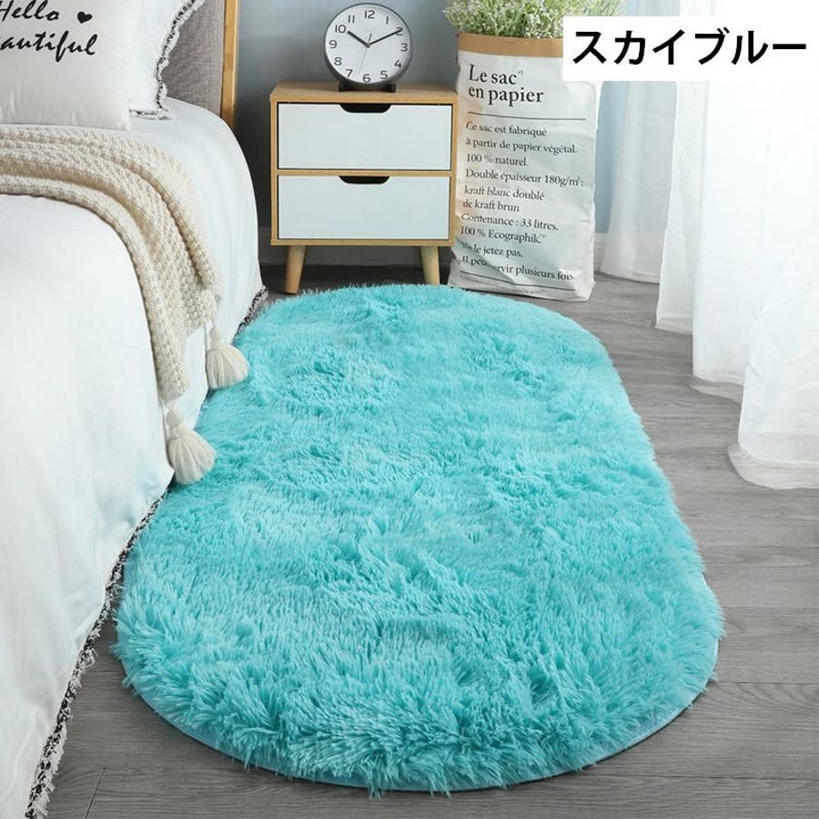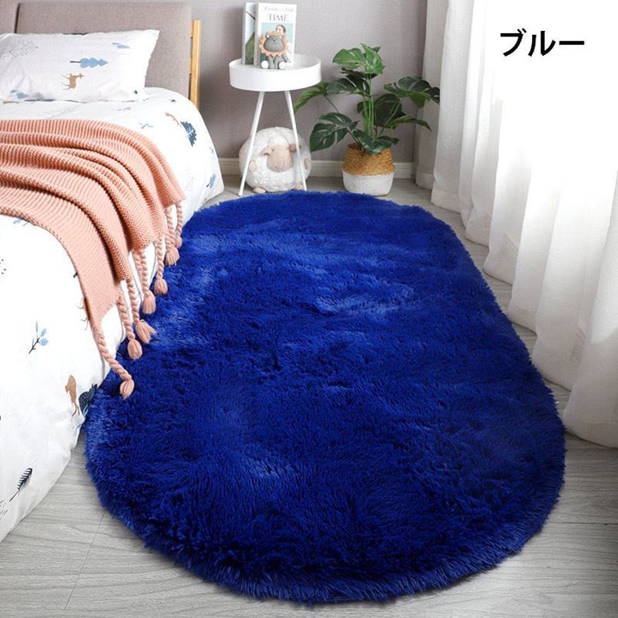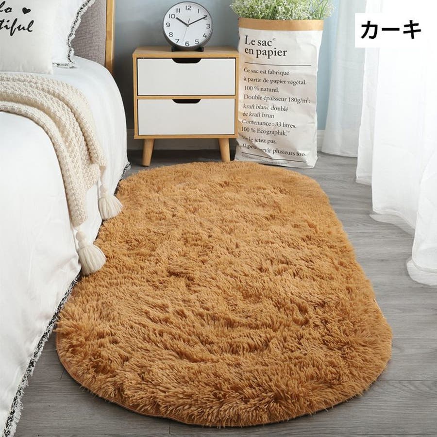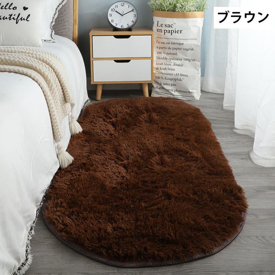 楕円形のシンプルデザインで、ソファーやベットの足元にぴったりですね◎
