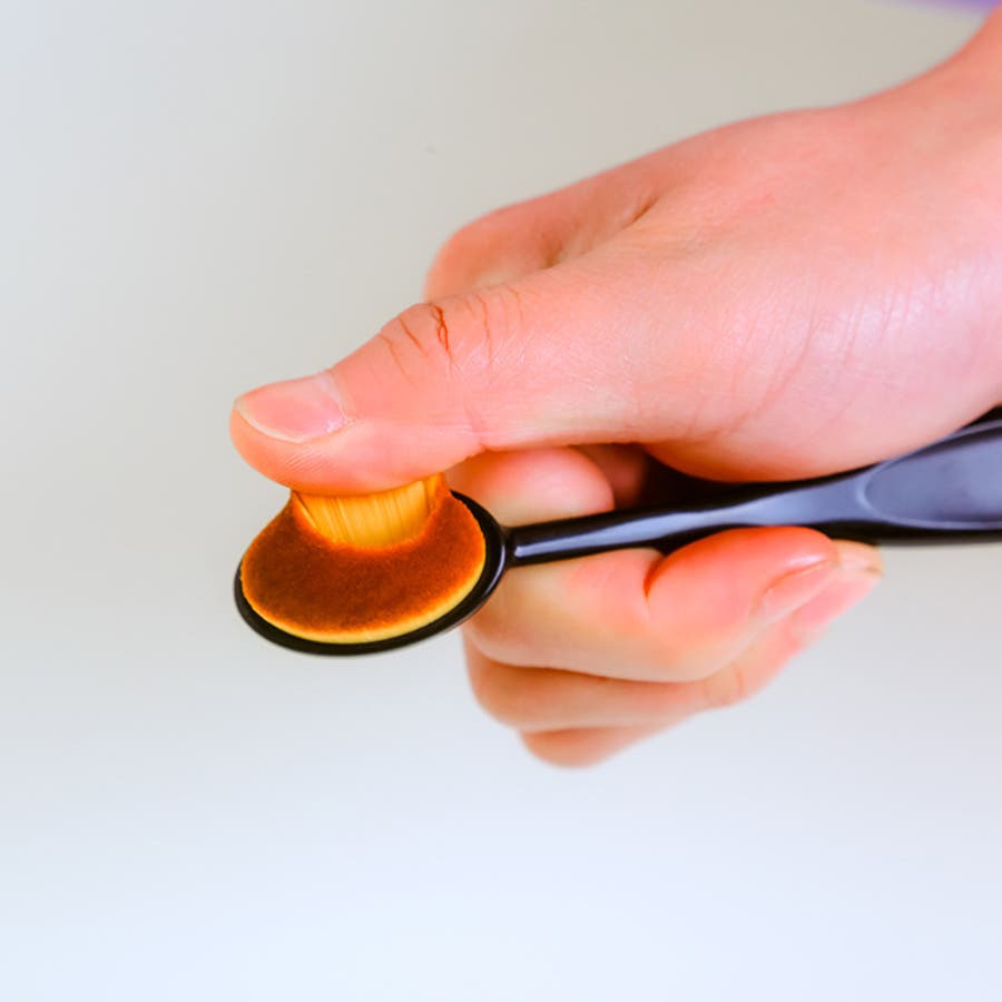 フレキシブルな柄付きの歯ブラシ型メイクブラシです。