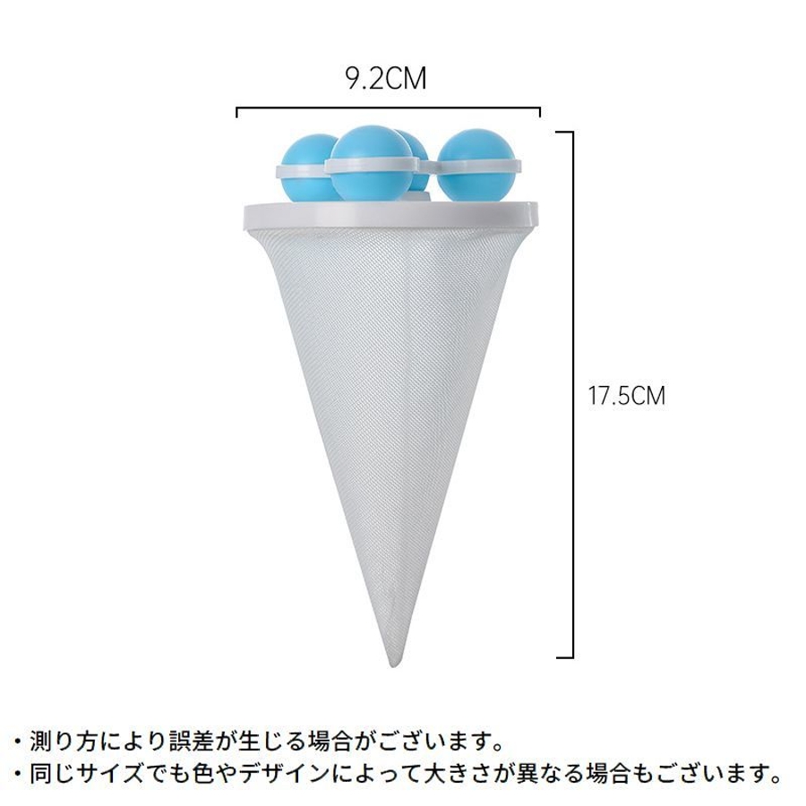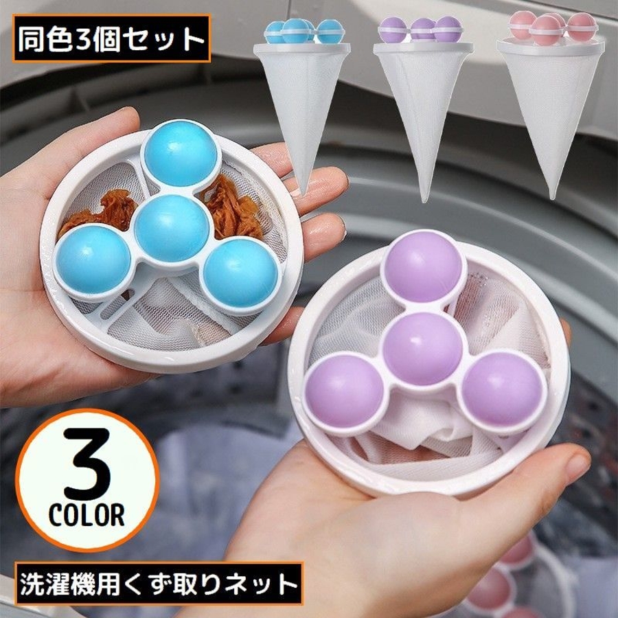 縦型洗濯機用の浮き型洗濯ボール付きクズ取りネット同色3個セットです。