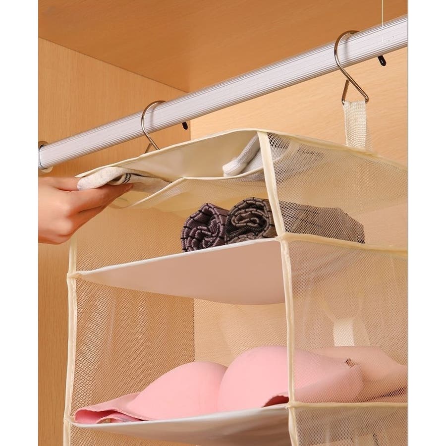 S字フック付きの3段タイプの衣類圧縮バッグです。