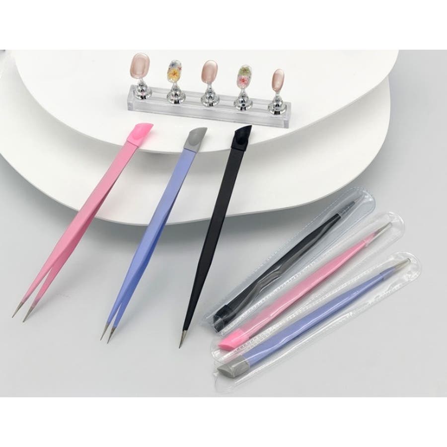 シリコンプッシャーとピンセットが一体型になったネイル用ツイーザーです。