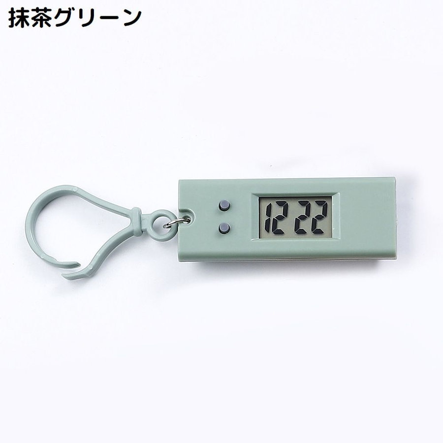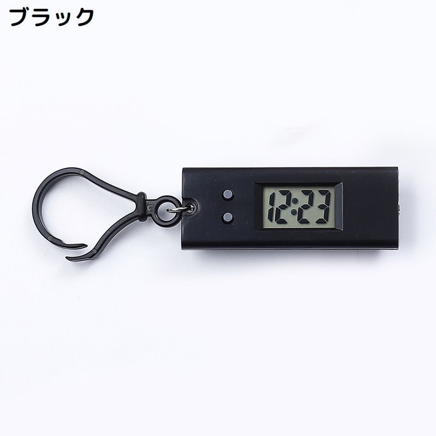 フック付きのキーホルダー型デジタル時計です。