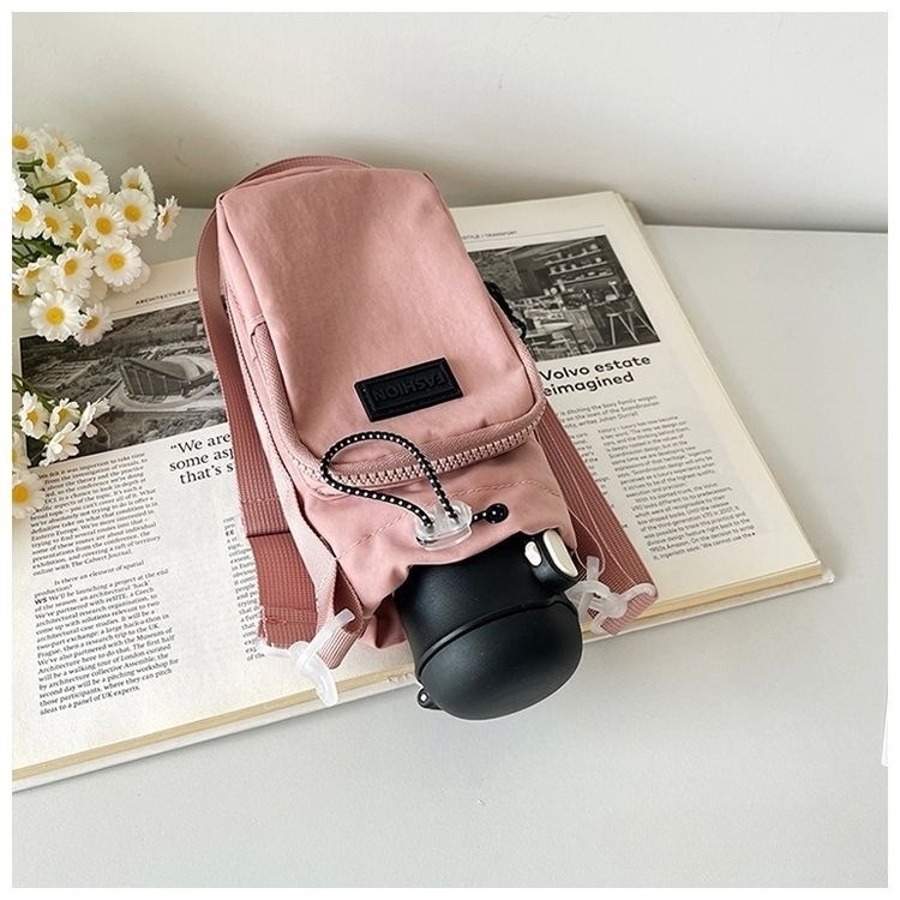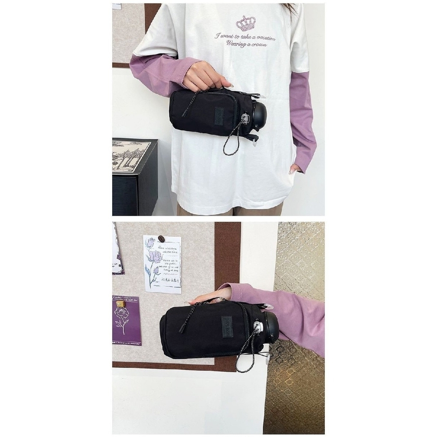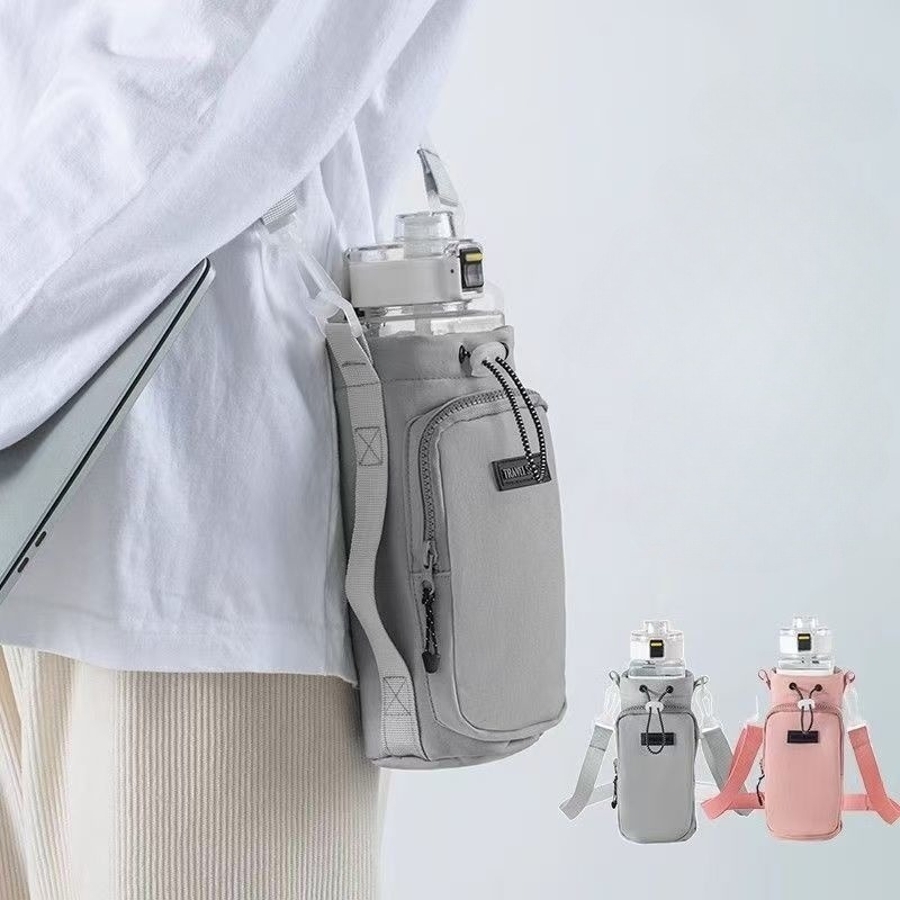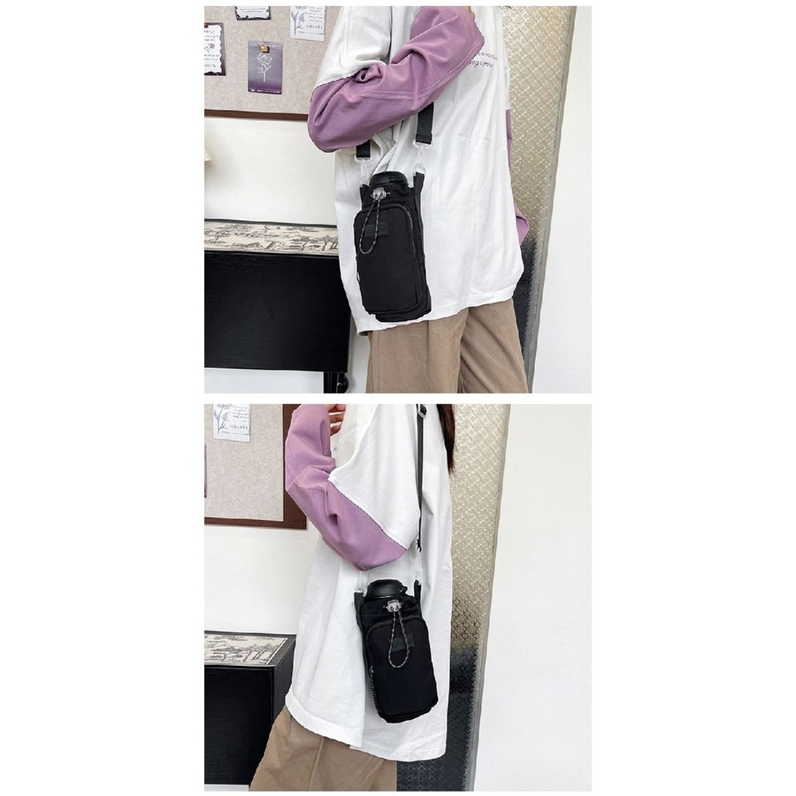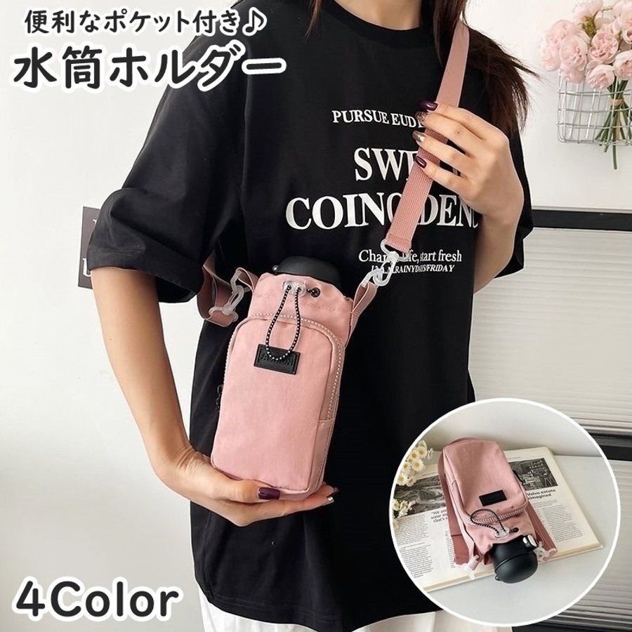 便利なポケット付きの水筒ホルダーです。