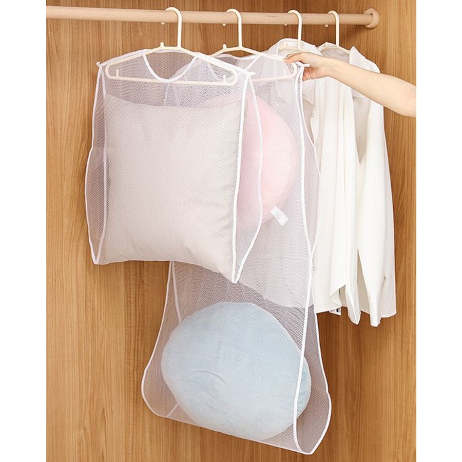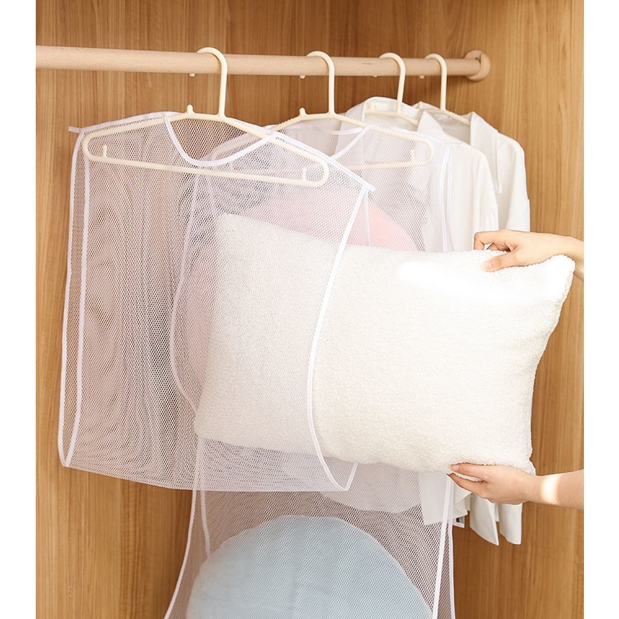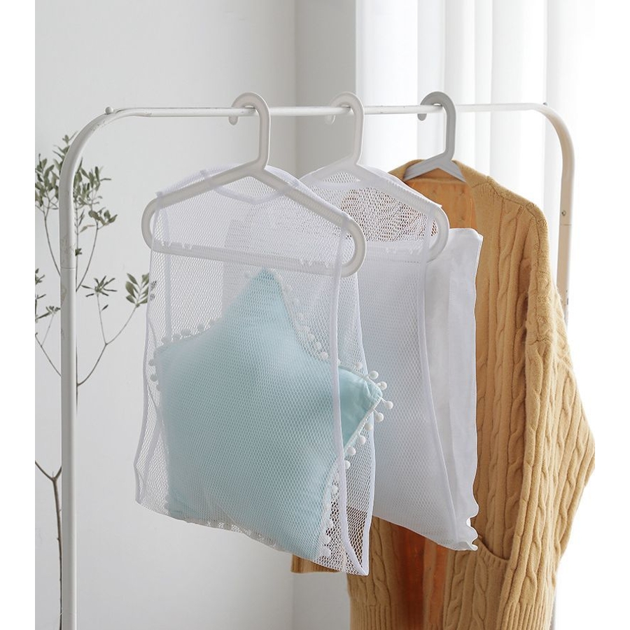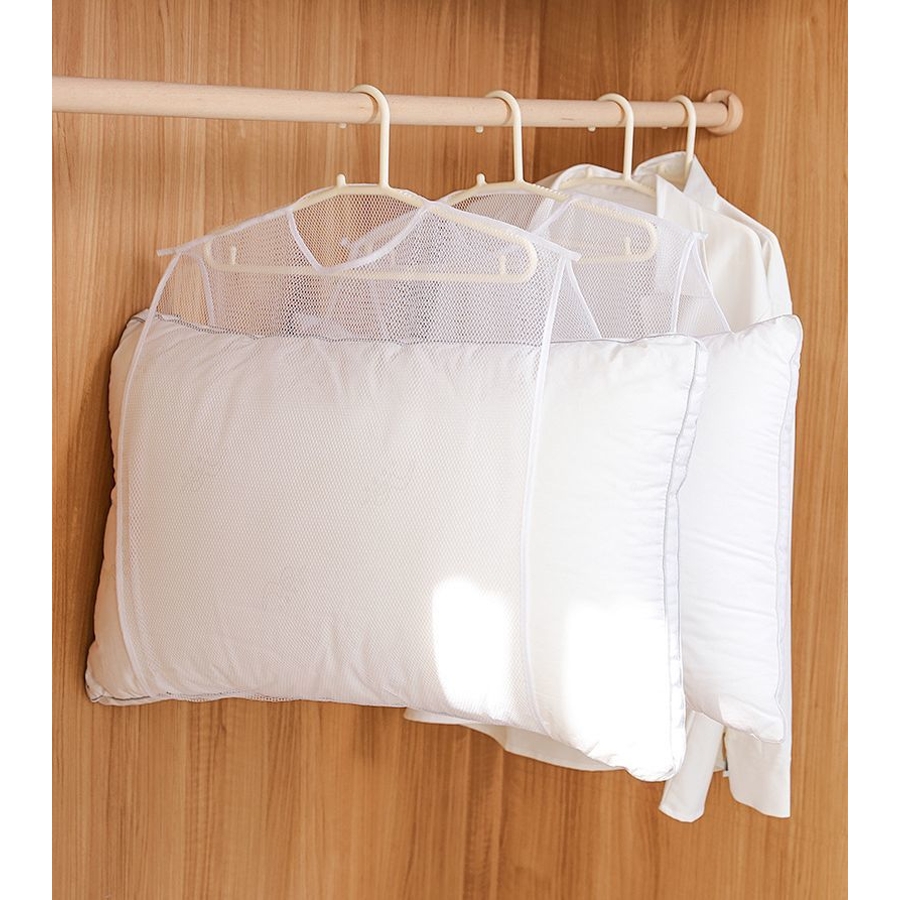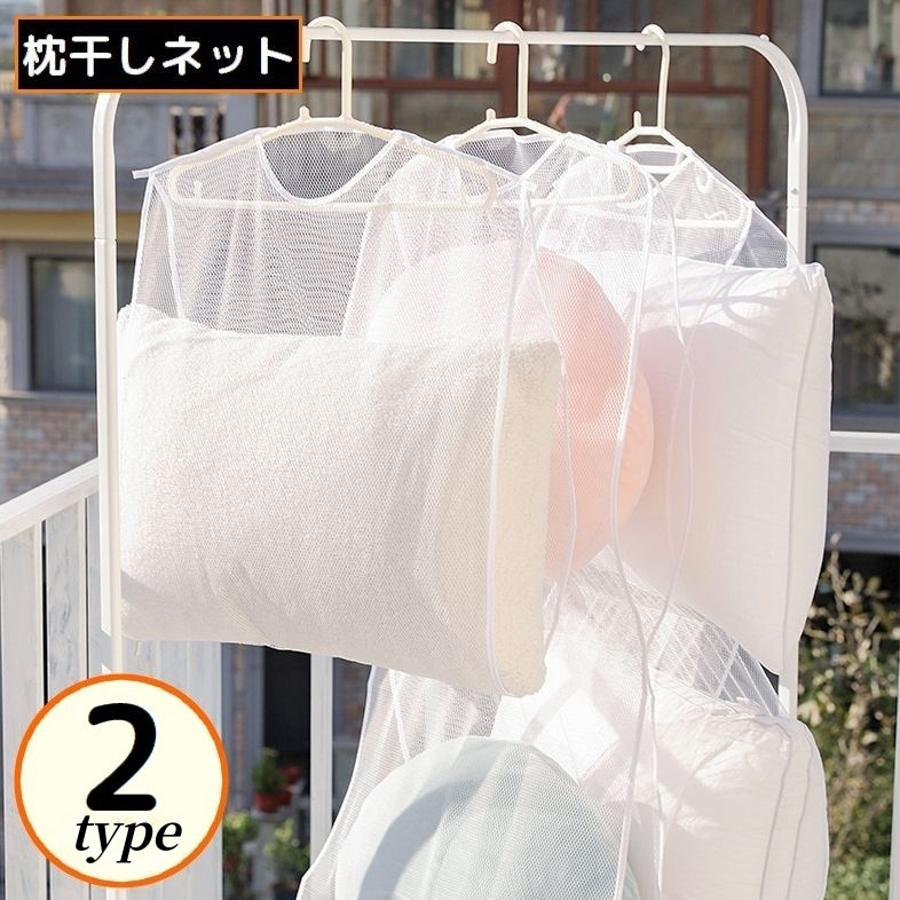 干しにくい枕をハンガー1つで簡単に干せる、枕干しネットです。