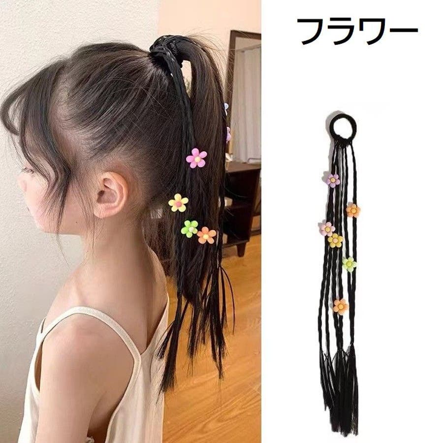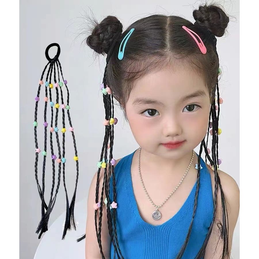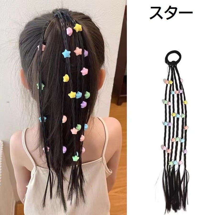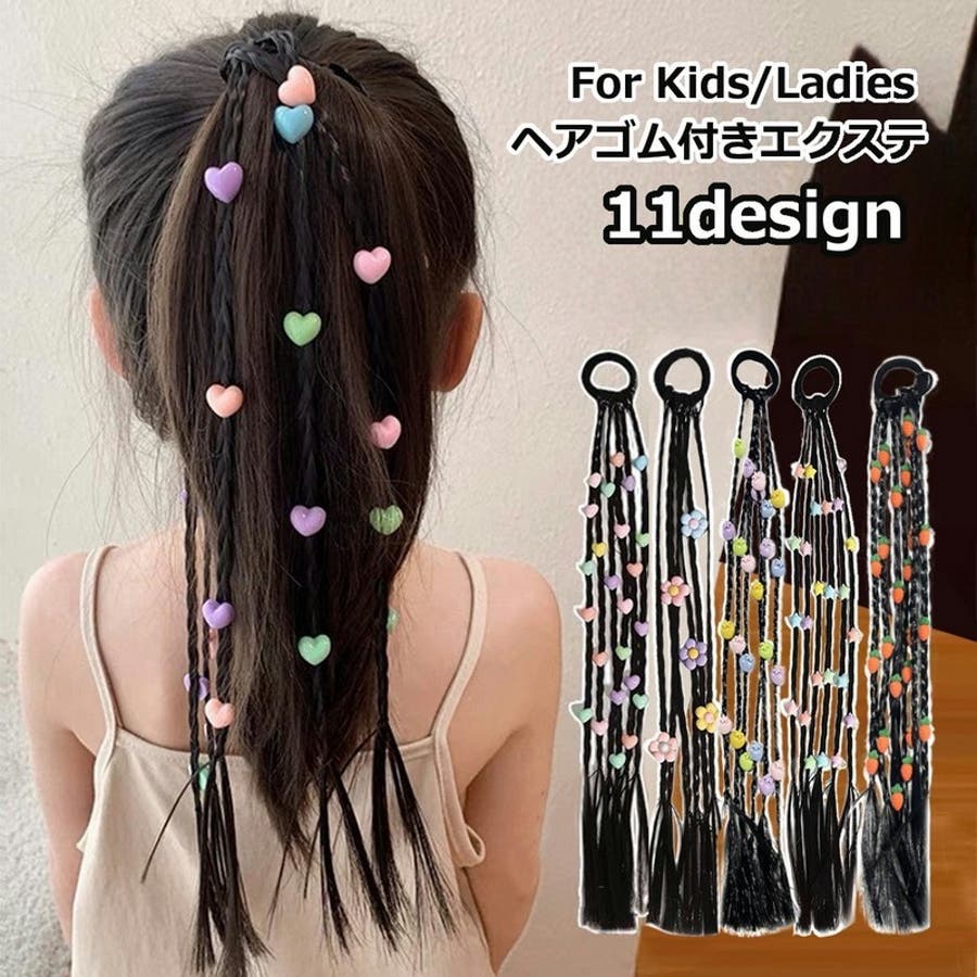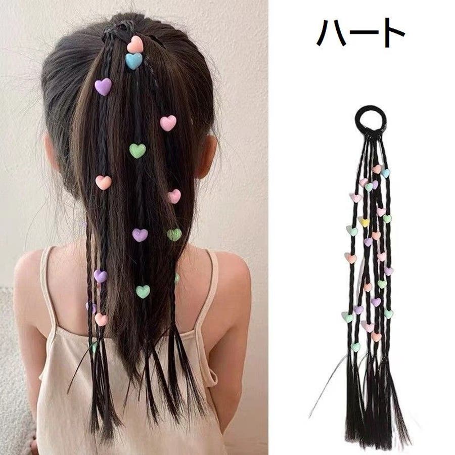 三つ編みタイプにかわいいチャームが付いたエクステです。