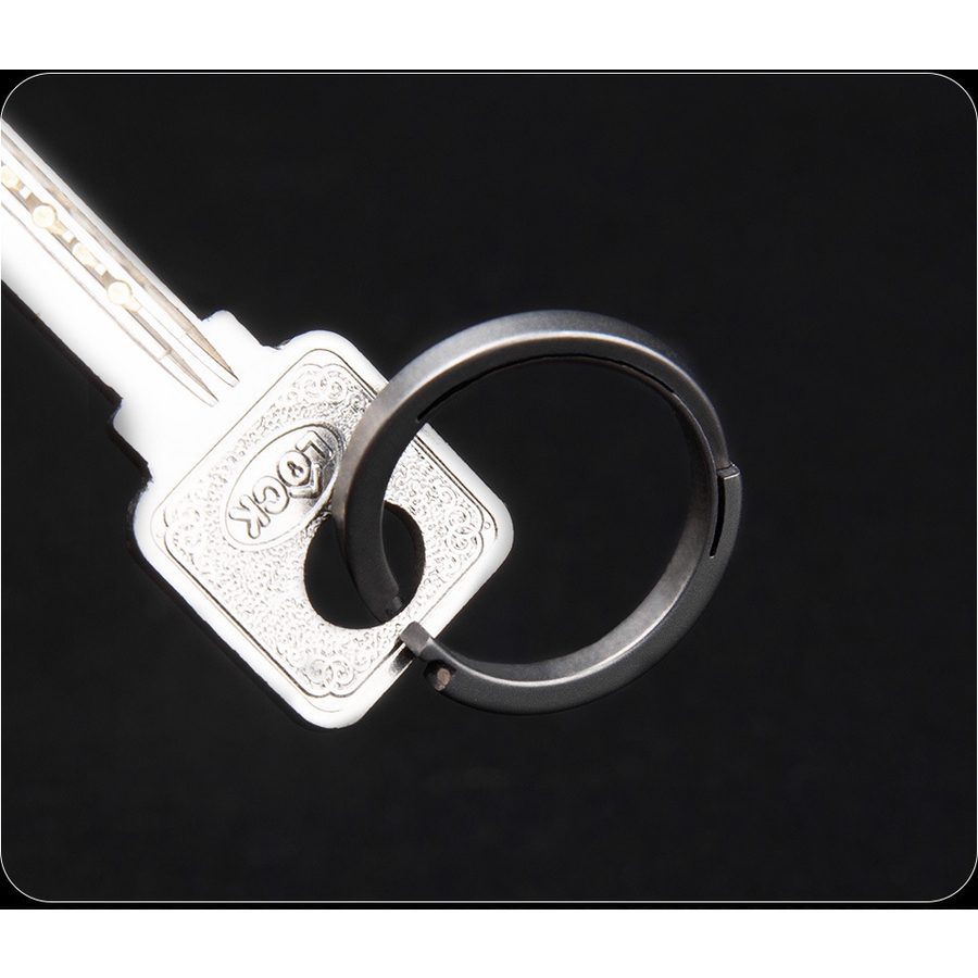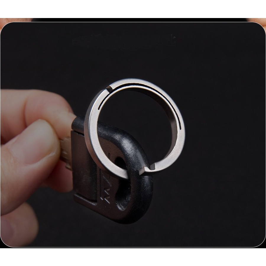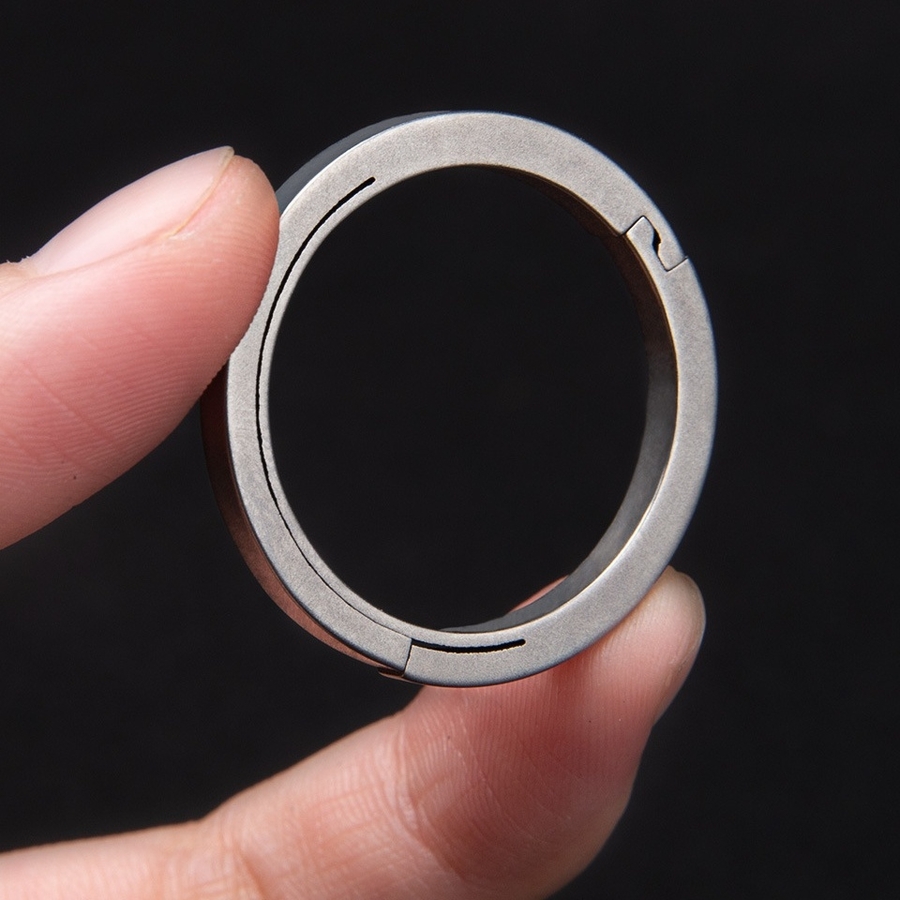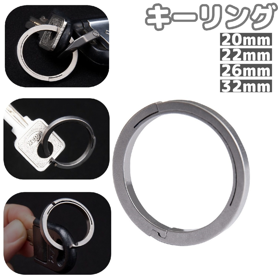 リングは切れ目部分を横方向にずらすことで開き、鍵などを簡単に付けられます。
