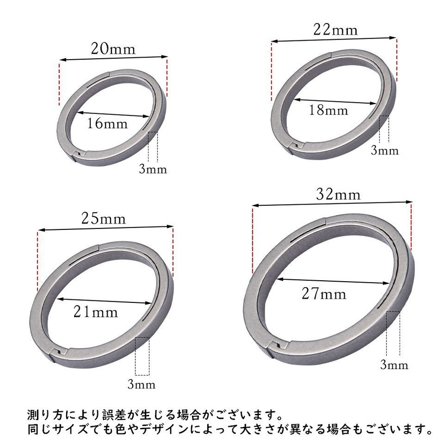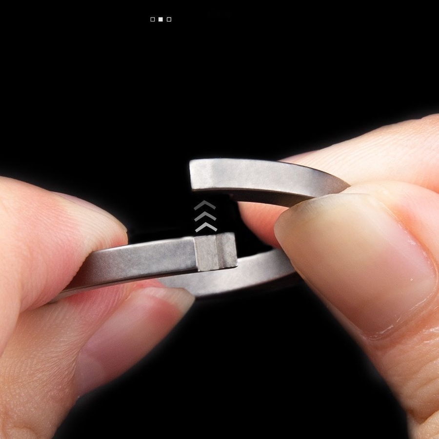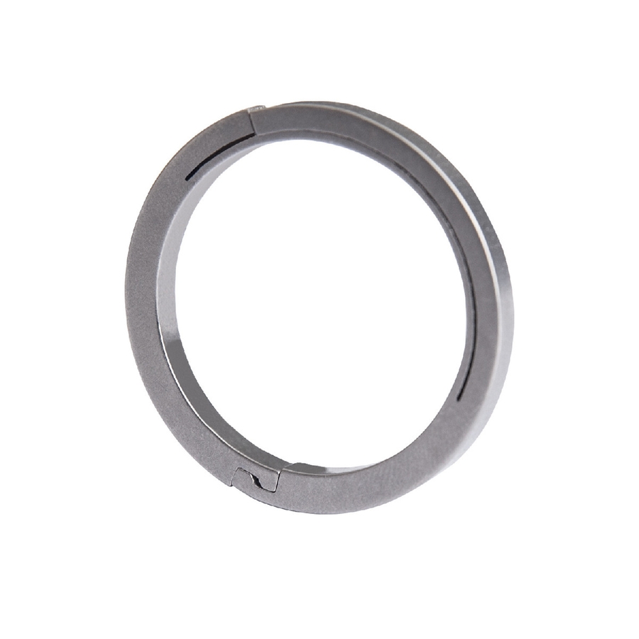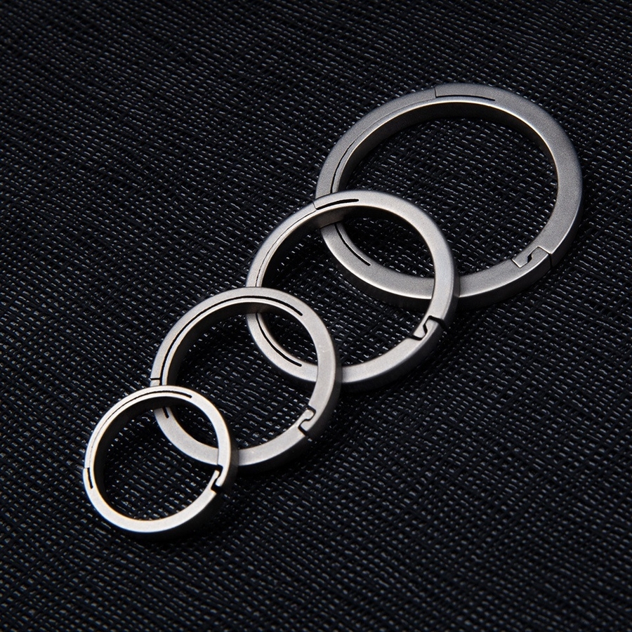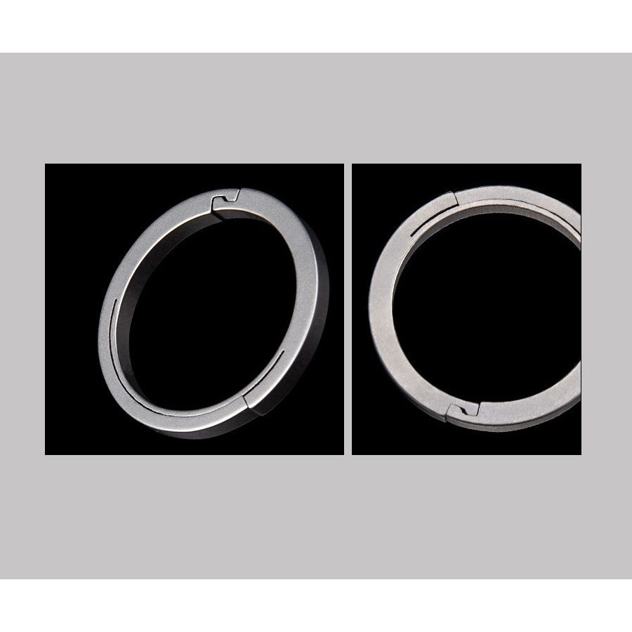 リングは切れ目部分を横方向にずらすことで開き、鍵などを簡単に付けられます。