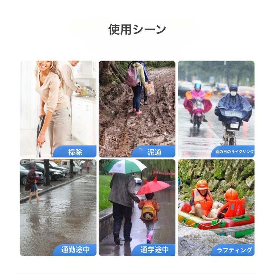 防水シューズカバーは膝下まで覆い、雨や水の防水、粉塵の侵入を防いでくれます♪